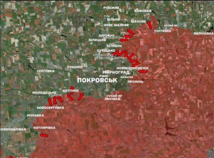 在2025年12月5日,乌克兰武装部队总参谋部公布的地图上,红军城市、米尔诺格勒