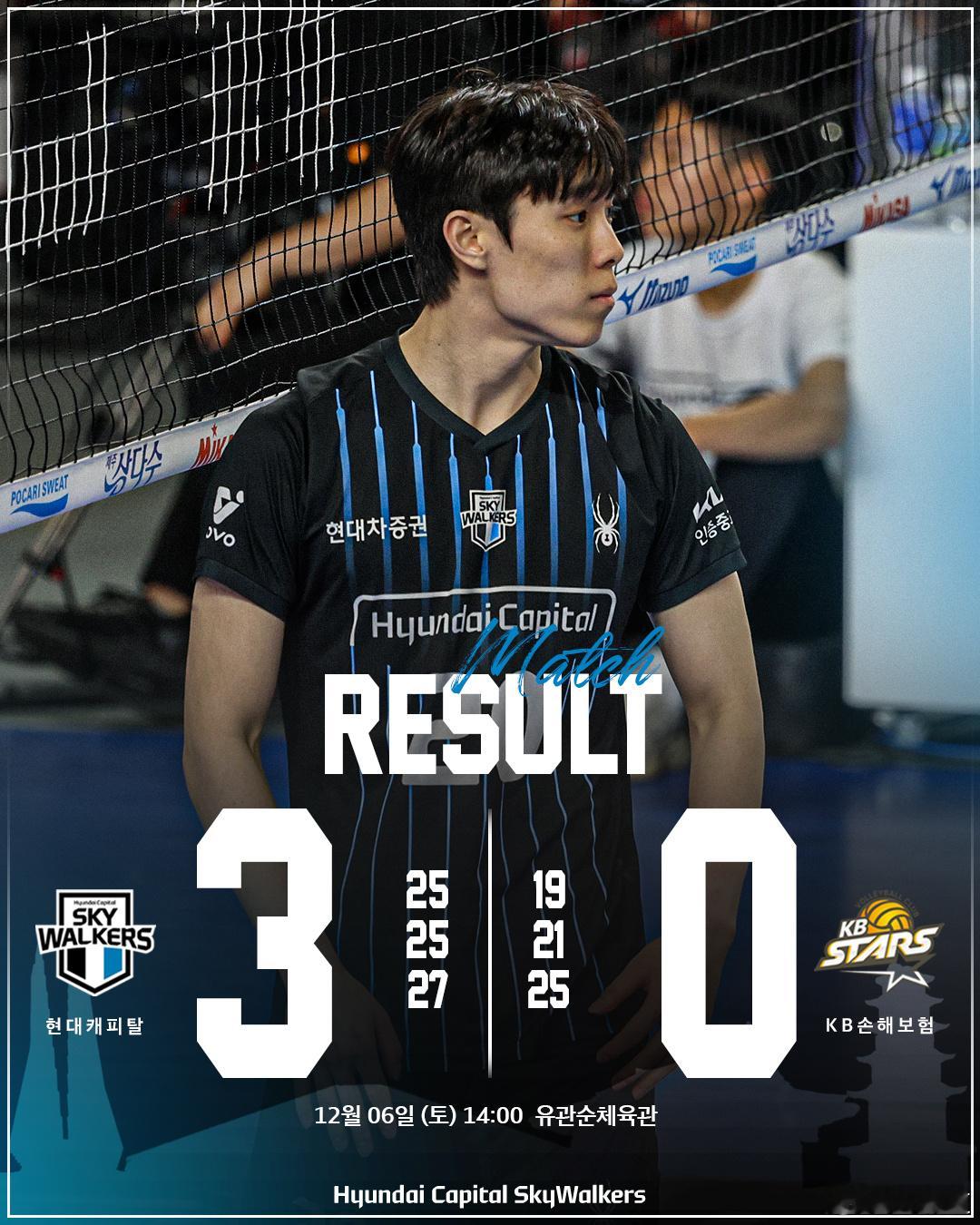 国际排坛动态韩国排球现代资本 3-0(25-19/25-21/27-25) KB保险现代资本在第三局12-16落后情况下,最后阶段还挽救了一个局点,最终直落三局击败KB保险,时隔38天再次取得连胜。KB保险遭遇2连败,最近5战仅赢1场。现代资本7胜5负积23分排名升至第二,KB保险7胜6负积21分排名第三。KB保险的两位二传黄泽义和李贤胜都因病缺席。另外,最近现代资本的许洙凤(许秀峰)感觉状态终于调出来了现代资本-KB保险进攻:49-35;拦网:7-8;发球:5-3;自失:19-13莱奥20分 32扣19中1发;许洙凤20分 23扣16中 2拦2发;申浩镇12分;崔珉豪5分罗景福19分 34扣13中 1发5拦;维耶纳12分 24扣11中1发;林成镇8分