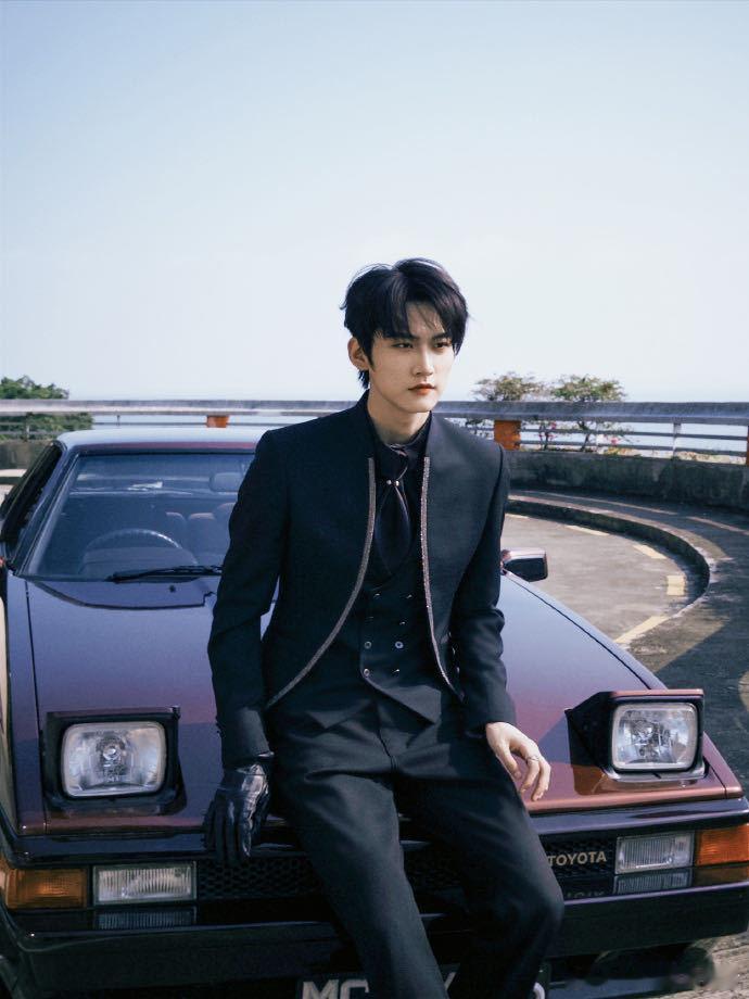 周柯宇开车是要来接我吗 黑西装马甲配皮手套,利落线条勾勒完美身形。侧身倚车整理手套的瞬间,仿佛电影里走出的贵族车手,冷冽氛围感拉满。