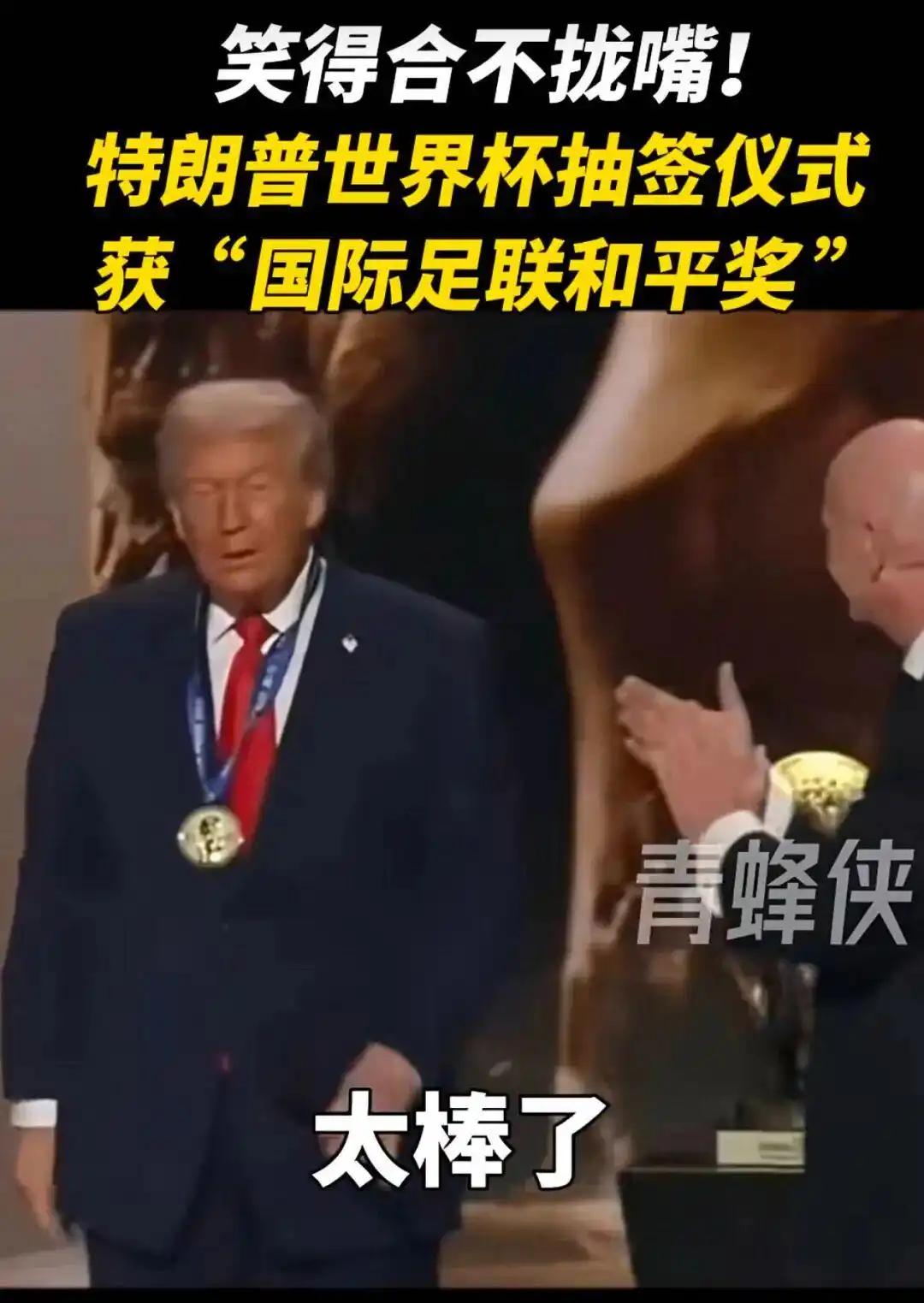 12月5日,美国总统特朗普在2026年世界杯抽签仪式现场,获国际足联主席因凡蒂诺亲自授予“2025年国际足联和平奖”。特朗普在获奖后发表讲话称:此项荣誉堪称其人生中最为重大的殊荣之一。