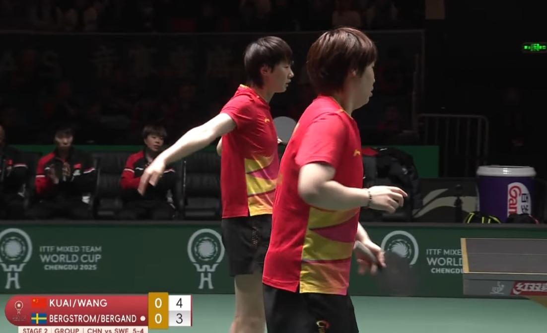 突发!今晚对战瑞典,居然是女双先上场, 结果鳗鱼又上场了, 但是看出肩膀不好, 经常做做扩胸运动。 今天中午对战日本队的时候, 鳗鱼肩膀就开始疼, 结果今晚又上场。 正常情况下, 女双也不用出场, 结果徐瑛彬被卡尔伯格零封了, 女双又在男双之前出场, 王曼昱又带伤出场了。 不过已经11:6赢了一局了。 第二局双曼5:1开局, 鳗鱼这孩子太坚强了!