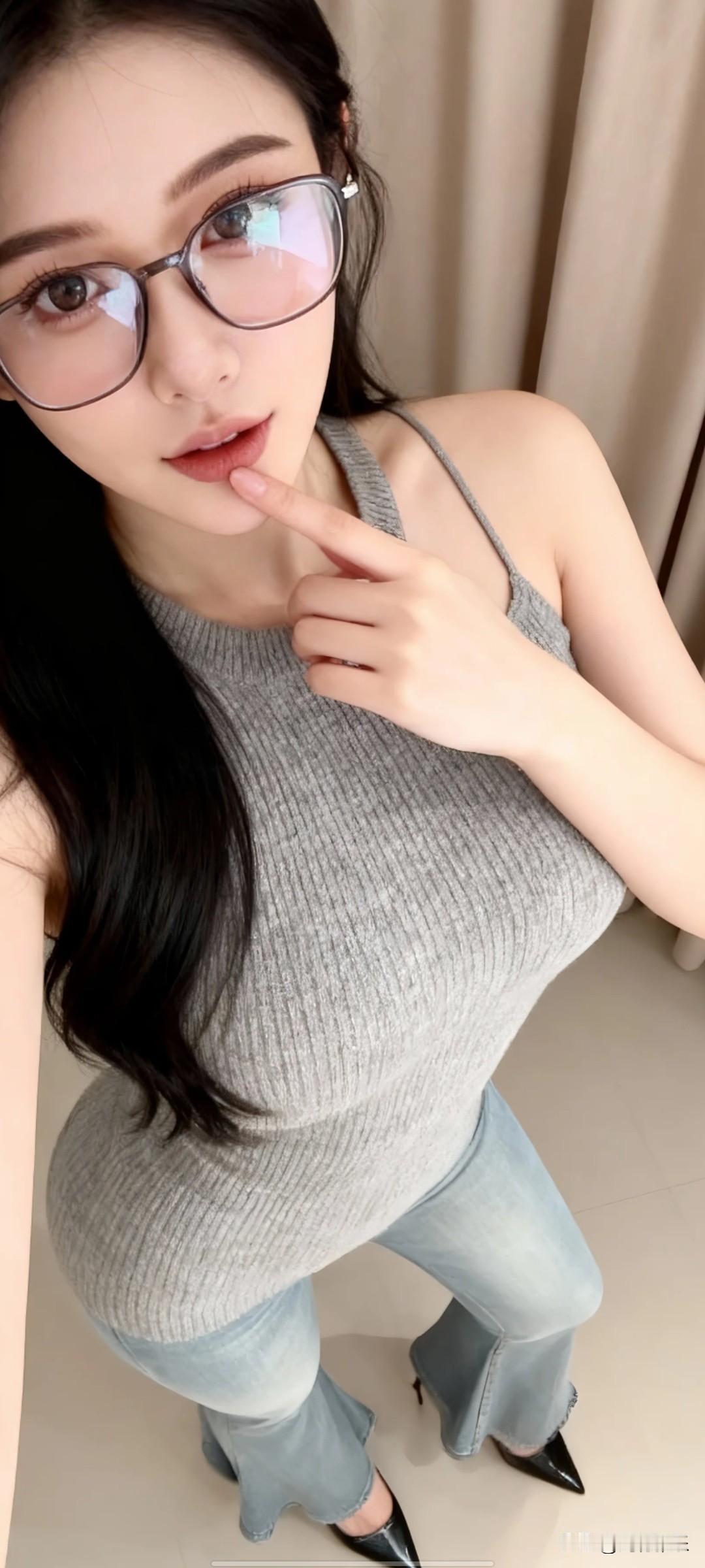 时尚眼镜少女,甜美自拍,轻松穿搭