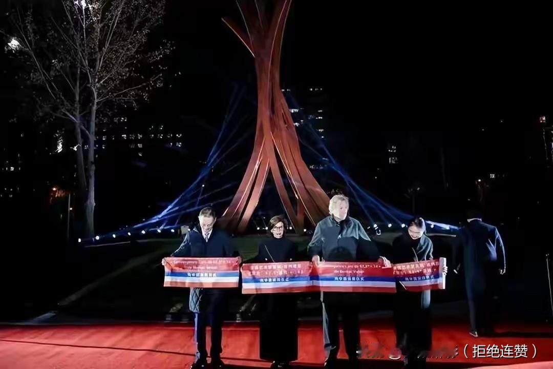 40吨重礼跨越欧亚!马克龙送的“双生雕塑”,让巴黎北京隔空牵手🇨🇳🇫🇷 马克龙访华放大招!一份重达40吨、高达18米的巨型雕塑《聚合》惊艳亮相,成为中法建交60周年最厚重的纪念🇫🇷✨ 这座由法国国宝级艺术家贝纳·维内创作的钢铁雕塑,在北京凤凰中心落地生根,而它的“双胞胎姊妹”早已矗立在巴黎奥运场馆。14根耐候钢弧线向上聚合,52.5度与54.5度的微妙倾角,藏着东西方文化的互补智慧——法国视角的浪漫想象与中国视角的东方哲思,在艺术中完美交融。 更巧的是,两座雕塑扎根的都是奥运之城!北京作为“双奥之城”,与巴黎因奥林匹克精神遥相呼应,这尊永久矗立的公共艺术,不仅是文化符号,更是中法关系超越地缘博弈的生动注脚。背后12项合作协议、800亿美元贸易额的硬核支撑,让“聚合”的寓意不止于艺术,更见于务实合作的深度绑定。 当钢铁弧线在欧亚大陆两端遥遥相望,这份跨越山海的“双生之约”,正书写着文明互鉴、命运与共的新故事~ 中法建交60周年 马克龙访华