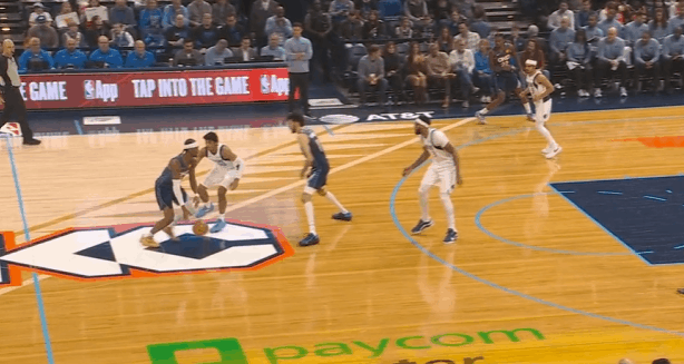 逐帧拆解:亚历山大技术欣赏,对阵独行侠高效33分图1边线球回合,杰林高位拿球亚历山大底角启动:见克里斯蒂无球紧贴不给一丝空间,佯装上提与杰林发动手递手配合,实则左手将克里斯蒂往后推的同时借力启动底角空切。接球后弱侧浓眉、马绍尔回收协防,亚历山大炸球调整后佯装分给外线空位的切特,随后趁浓眉不备瞬间完成挑篮终结。图2和切特LOGO位置的“Drag Screen”配合,借助切特的掩护挂住克里斯蒂后面对延误至三分线的浓眉:行进间变向走左路加速突破并瞬间加大步幅,利用向前突破的惯性伴随支肘撞开浓眉,再迅速衔接向左后方撤步最大化投篮空间,稍带后仰的中投稳稳命中。慢动作细节呈现:图3图4早期进攻边路单打马绍尔,看样子是要使用:右脚向前刺探逼退防守人后的炸球撤步三分。但这个回合马绍尔往后退的反应慢了半拍,于是亚历山大迅速启动左路突破,对抗衔接背转身撤步创造投篮空间,转身的同时将球换到右手后完成合球出手中投。图5持球刚过半场抓早期进攻,借助卡森设置的掩护换走马绍尔、点名布威:在布威换防过来上步的瞬间立即变向启动右路突破攻击前侧脚,行进间见布威尝试下手切球立即撩起手臂合球跃起出手中投。图6和上个回合同样的进攻起手,也是点名布威:这个回合先是佯装走左路突破,在布威向自身左侧横移的瞬间立即转身过掉,再面对前来补防的马绍尔和底线上前协防的克里斯蒂,选择炸球后急停滞空跳投。图7哈登的招牌“鲨鱼步”起手调动克里斯蒂防守重心,随后迅速衔接后脚的“挖步”启动右路突破——鲨鱼步衔接挖步启动突破,非常经典的哈登技术系统——抢出身位优势,行进间对抗后先起步后合球挑篮打进2+1。图8抓早期进攻、独行侠阵地防守立足未稳单打克里斯蒂:胯下、背运起手,换到左手后“拜佛”骗到克里斯蒂防守重心迅速衔接变向右路突破,行进间沉肩对抗后再衔接翻身后仰中投。慢动作细节呈现:图9雷霆14连胜