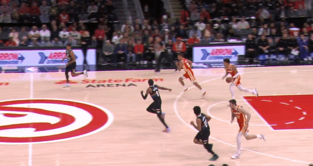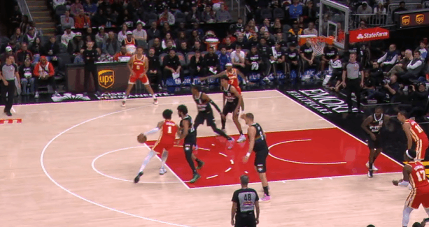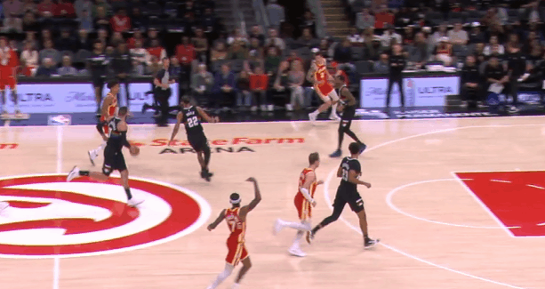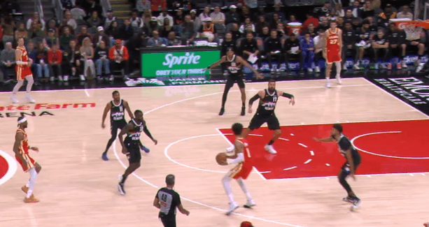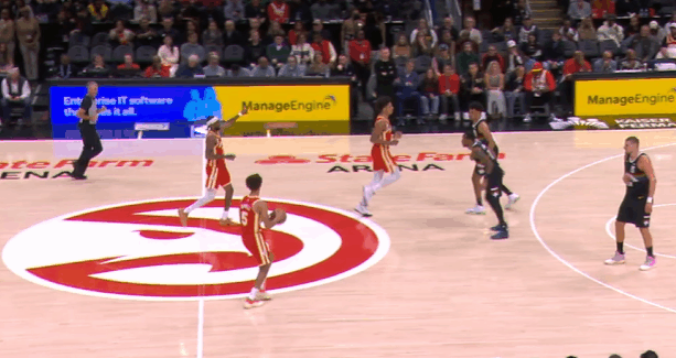 杰伦-约翰逊观察:21+18+16大号三双,16助攻生涯新高图1持球和奥孔古发动挡拆配合,挡拆行进间吸引弱侧黄忠回收协防,随后立即回给外线空位的戴森。图2单打穆雷遭遇约基奇的延迟夹击,跳起后佯装传给外线的奥孔古误导弱侧兼顾一防二的哈达威,实则单手传球精准制导空切至篮下的里萨谢。图3持球推动转换,单手“炮弹传球”找到底角空位的奥孔古。图4暂停回来面对掘金的2-3联防接球突破同时吸引底线瓦蓝、黄忠两人防守注意力,随后佯装抛投终结进一步误导瓦蓝,实则给溜底线空切的奥孔古送上空接。持球推动转换为寻觅到投篮空间/快攻最前线的队友输送炮弹:图5、6、7。图8戴森被约基奇错防,持球过半场后球传导给左侧三分线外发牌的约翰逊,戴森随即为沃克设置非常扎实的“Flare Screen“完全挂住追防的布朗,沃克借掩护空手移动至45°接约翰逊上球三分抬手就进,打击约基奇。图9持球推动转换进攻,掘金退防沟通失误,约翰逊吸引沃特森、琼斯双人夹击,随后立即跳传找到右路跟进空切的戴森。图10早期进攻回给“拖车跟进”(Trailer)的铂金打击约基奇。杰伦约翰逊半场三双掘金1分险胜老鹰