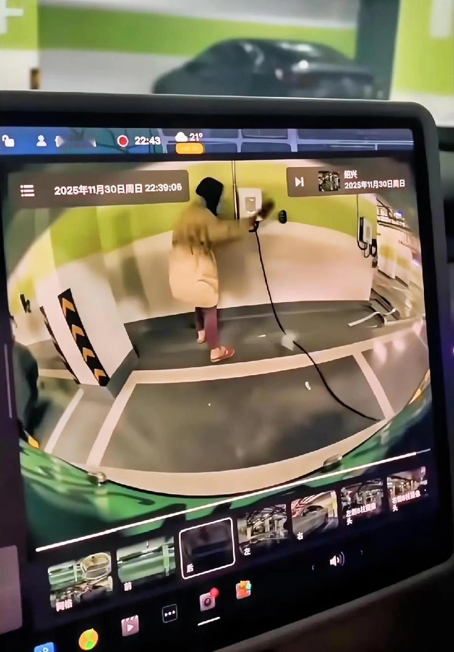 一般人真不敢这么干啊! 看来有时候知识真的是能让人保持清醒。 一个女子在地下车库,用菜刀将正在充电的汽车充电线砍断了!她是真不怕过电啊!这都是高压电,真的是不怕啊! 不知道出于什么目的,这个女子要这么干! 她还没砍充电箱,说明还不太“傻”,知道砍充电箱要出事儿,大家觉得她为什么要这么干呢?
