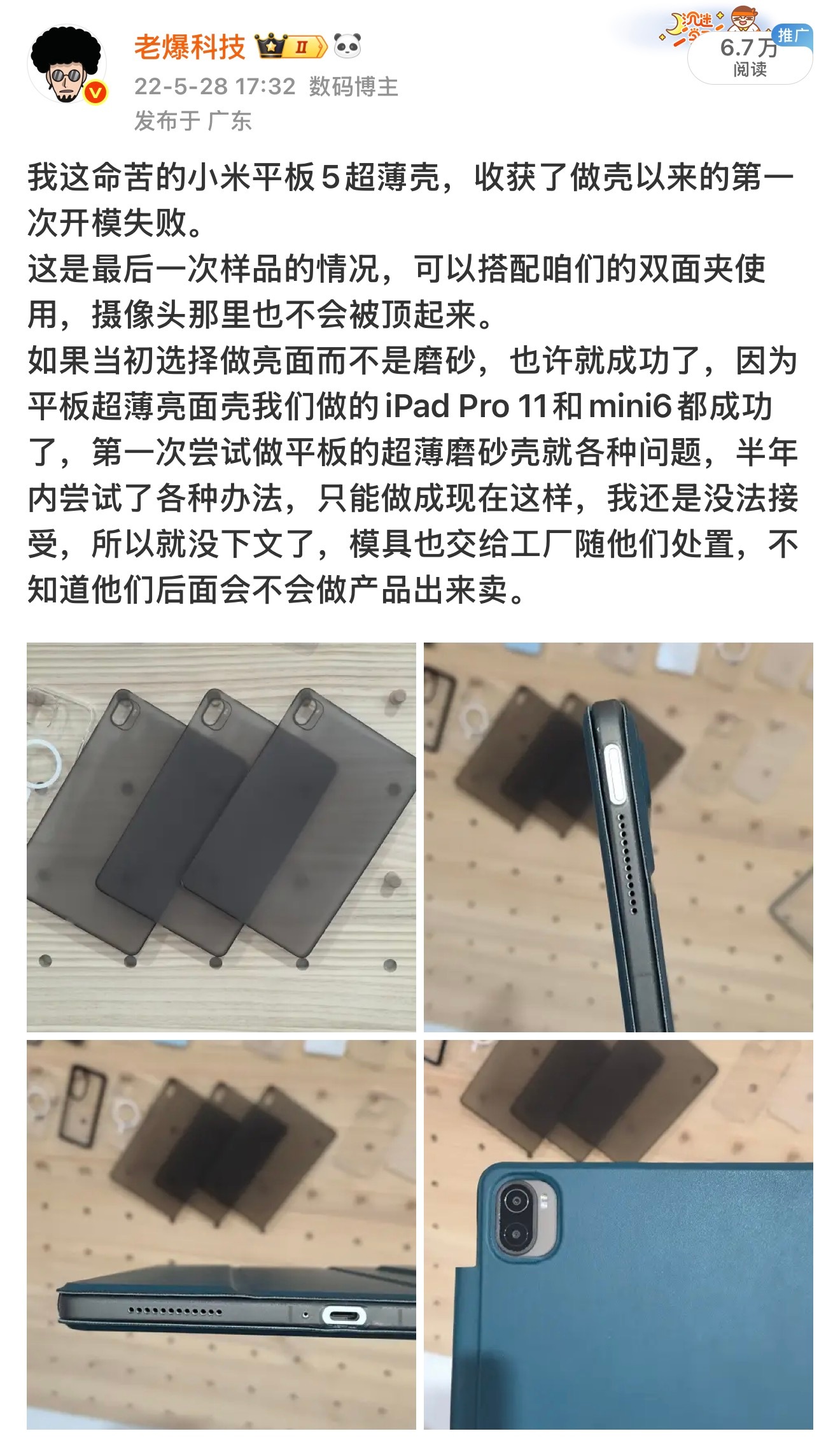 我们给平板做壳子可以追溯到2020年,那时候给 iPadPro 11寸做了一个超薄亮面壳,花了四五个月时间。21年给 iPadmini6开模做了超薄亮面,花了四个月时间。22年给小米平板5也做了超薄 pp 壳,这次尝试的磨砂工艺,花了六个月时间,没做到满意,开模失败。24年底给 iPadmini6 开模做一个没做过的平板超薄 PC 壳,花了6个月时间没做到满意,开模失败。25年3月给 iPadmini6 开模做一个013,花了7个月时间,做成功了。25年8月给 KPad 开模做超薄磨砂 PP 壳,花了三个月时间,做成功了,星期一(12月1日)上架。有朋友说我们做个鸟壳子,还要这么久工厂有进步了,这几个平板壳里面就 KPad 是最快做出来的。小米平板5磨砂 pp 搞失败了,我说过会卷土重来,所以 KPad 我们做成功了。mini6超薄 PC 做失败了,失败的原因我差不多找到了,下次遇到合适的机型,我会把它征服