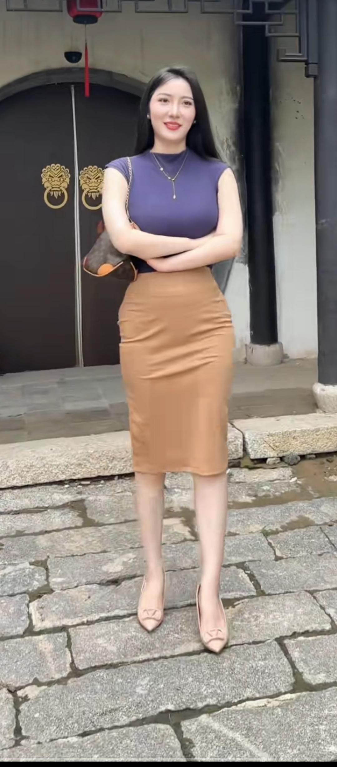 优雅气质,紫色上衣搭配棕色半身裙,简约大方,尽显女性魅力!👗👠💄