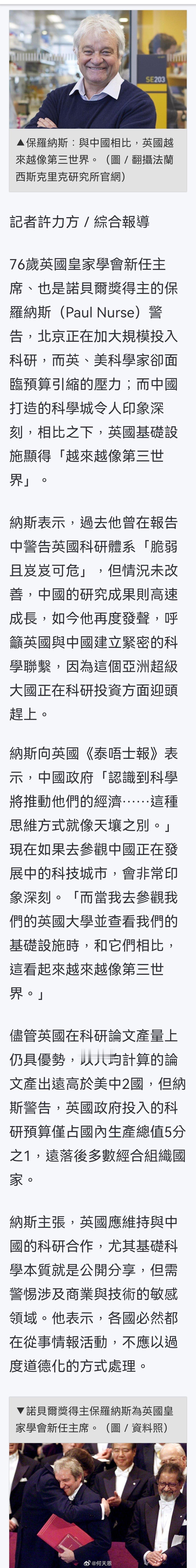 诺贝尔得主:与中国相比,「英國越來越像第三世界」。海外新鲜事何天恩