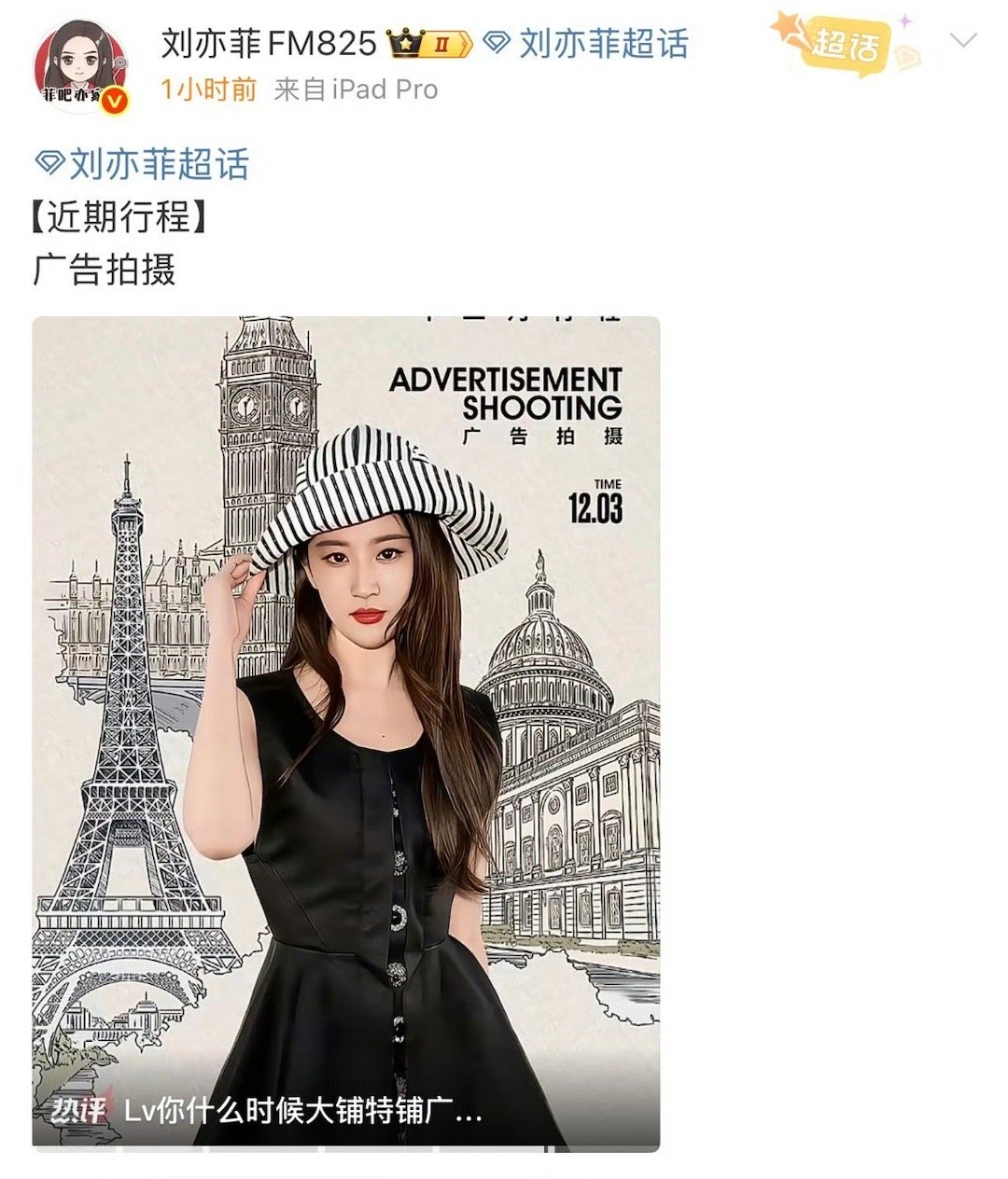 刘亦菲的c位,从来不需要靠小字备注内娱也好,全球也好,另外,这张lv的衣服越看越