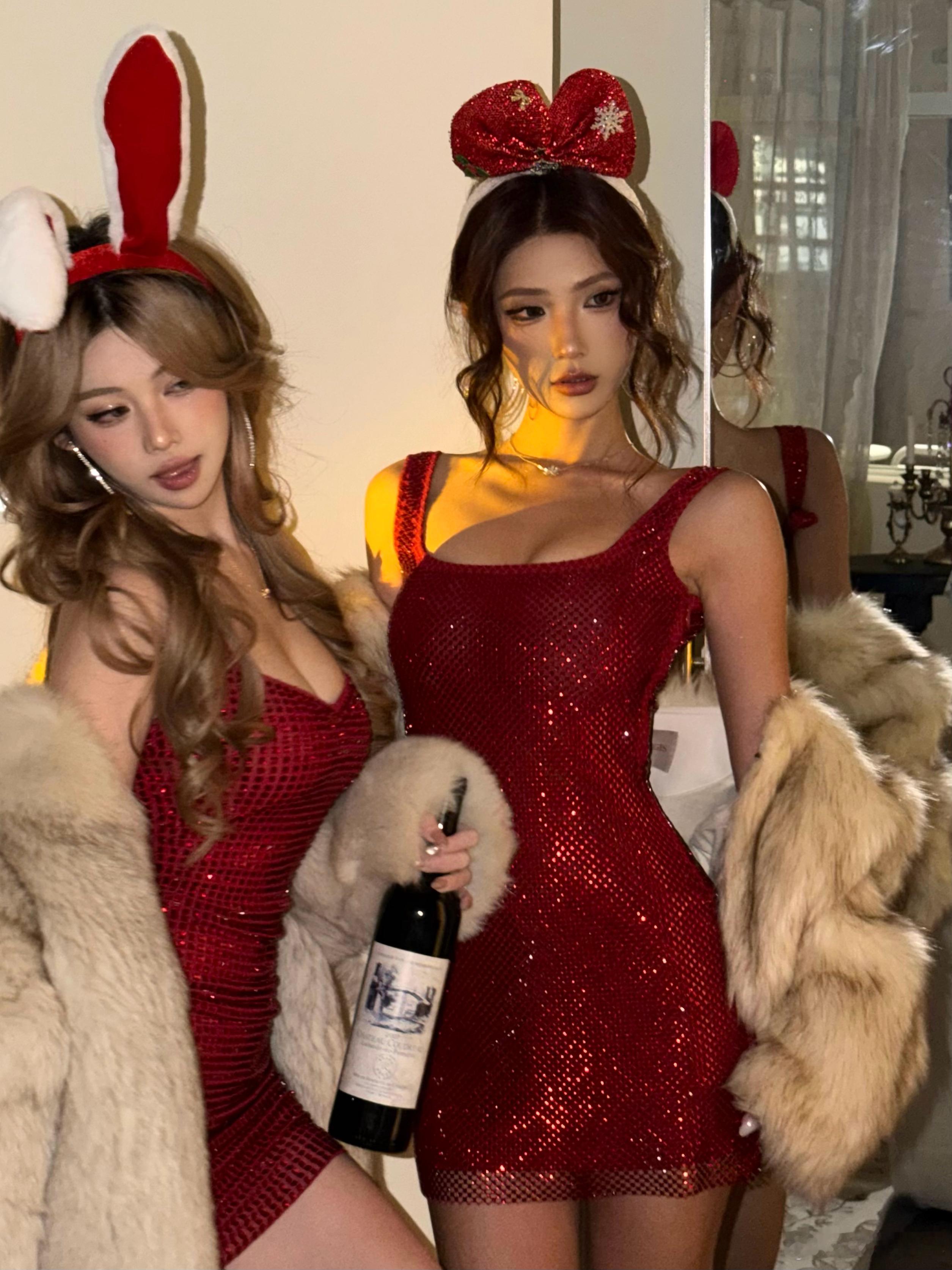 青丝高绾,珠饰轻垂,一袭白纱配红绦,妥妥是古言里才有的大家闺秀!