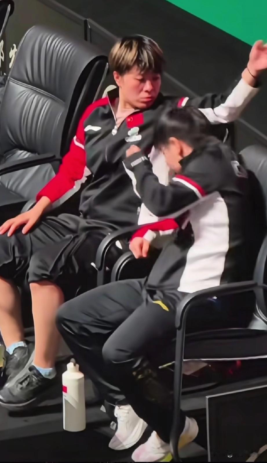 大迪迪哥像犁了三亩地回来了。 又被这一幕暖到了,大迪和削球手琳达打完比赛后,她跟莎莎坐在一起看比赛,看到大迪累的脸都红了,看到大迪把裤腿挽那么高,有网友说:“我爹割麦子时的裤腿和大迪挽的一样一样的[捂脸]”。 喜欢大迪的个性,感觉大大咧咧性格很好的,她们看着比赛,一颗球飞过来,莎莎吓得捂着头靠像大迪那边,大迪很冷静的伸手接球保护莎莎,看到有网友说:“卷着两只裤腿伸手救莎莎的大迪,此刻的迪哥具象化了。” 大迪今晚是迎来自己在成都混团的首秀,她为中国队拿到2分,打削球确实累。大迪比赛的时候,莎莎坐在马琳旁边,局间的时候莎莎跟大迪说:“拉住就行”,莎莎打削球很有心得,所以也会给大迪指导一下。怪不得平时莎莎都喊大迪是“迪哥”,大迪在身边确实很有安 全感啊。