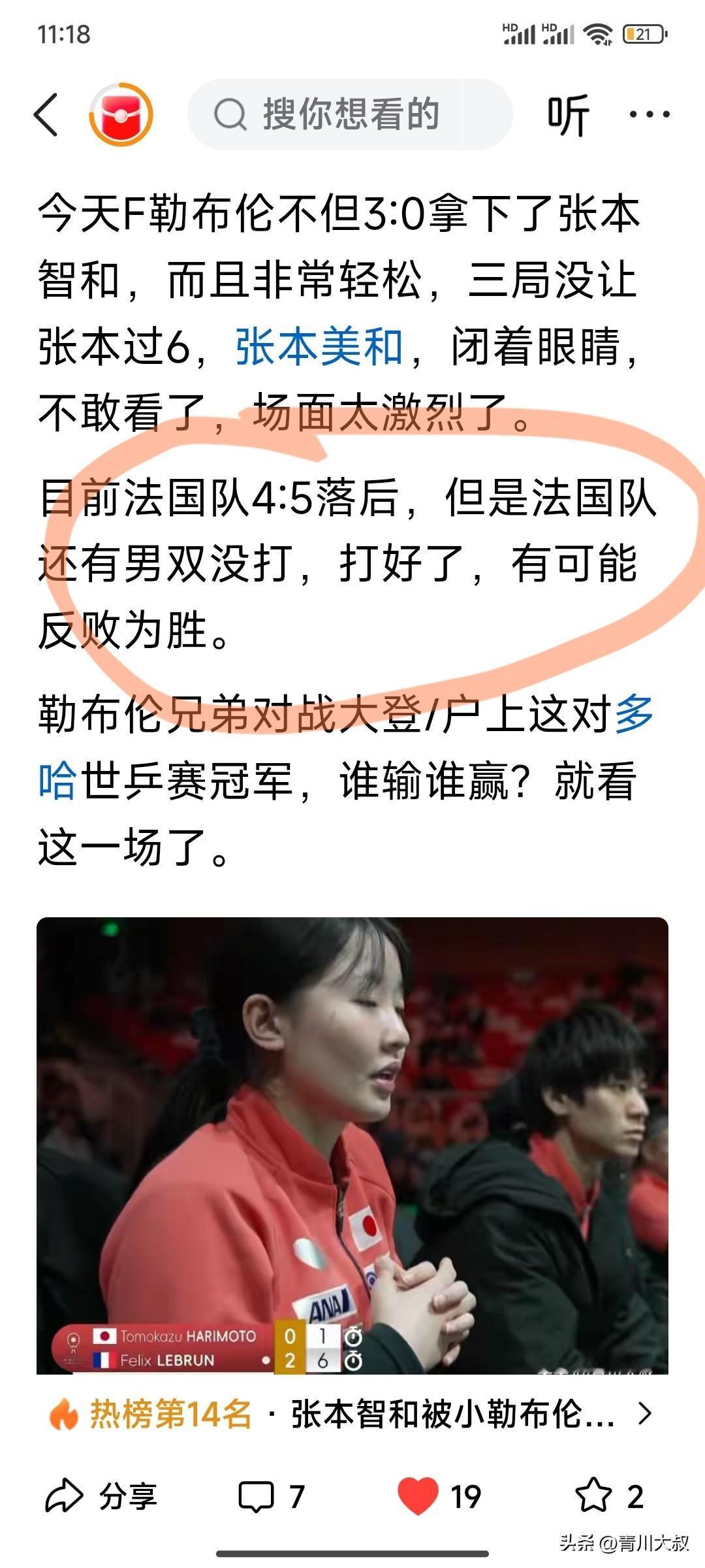 兄弟们!我猜对日本队要输了! 你们服了吧[呲牙] 当时张本智和被小布零封, 我就说勒布仑兄弟打好了, 能赢日本队! 结果勒布仑男双真是3:0赢了日本队! 只不过我以为日本队会让大登/户上打男双, 日本队却莫名其妙的派出 张本智和/大登。 结果张本智和男单男双都被零封!