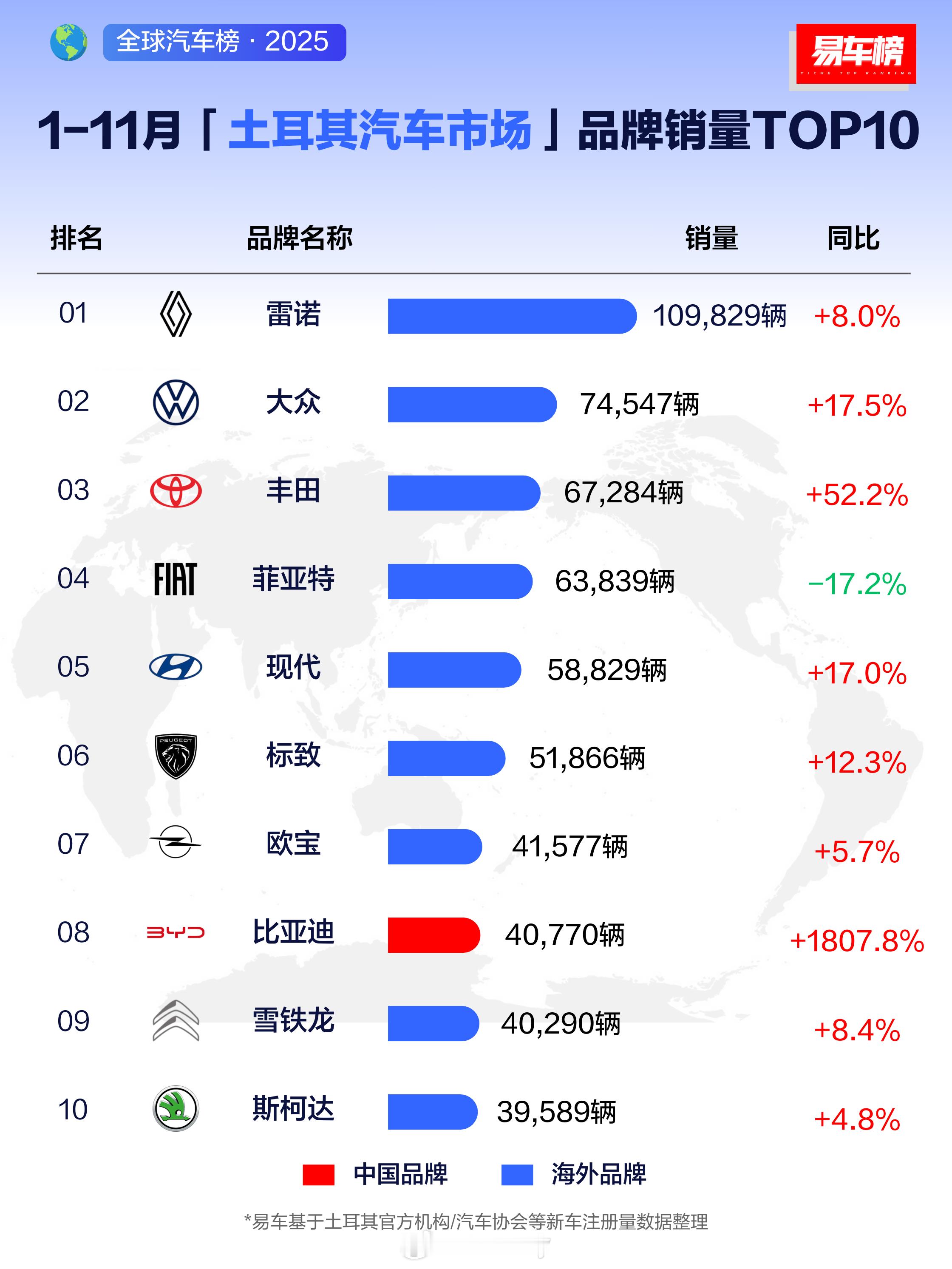 比亚迪在土耳其的销量也挺猛的,今年1-11月已经卖了超过4万辆新车了。11月比亚