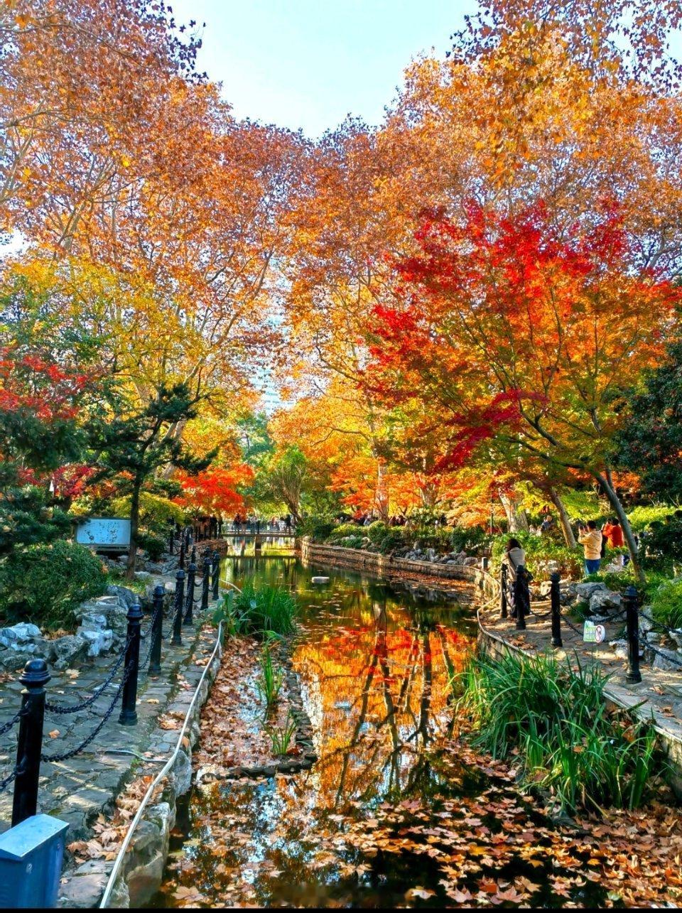 今天带小女儿去虹口的鲁迅公园,向鲁迅先生坐像鞠躬。顺便欣赏一下公园里的美景!初冬的鲁迅公里的红枫上线了。是斑斓,似油画,静谧而深邃。小河如镜,倒映着岸边的树木和天空,虚实之间,美的如梦如幻!这个季节,天赐美颜。我的浪漫瞬间