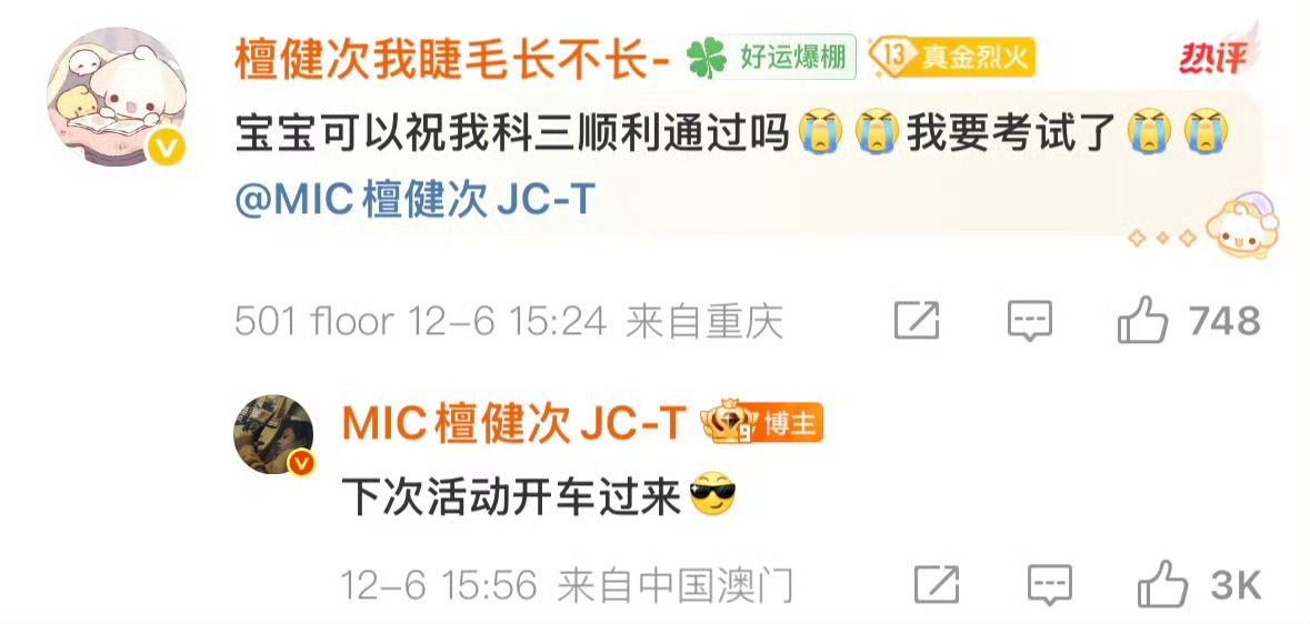 檀健次心理委员在哪我不得劲 檀健次尖叫之夜前空降超话翻牌,从聊穿搭到分享日常超暖心,宠粉天花板名不虚传。被翻到的粉丝狂喜,没被翻到的刷满八百条仍落空,满脑子“为什么不是我”,酸到急需心理疏导。