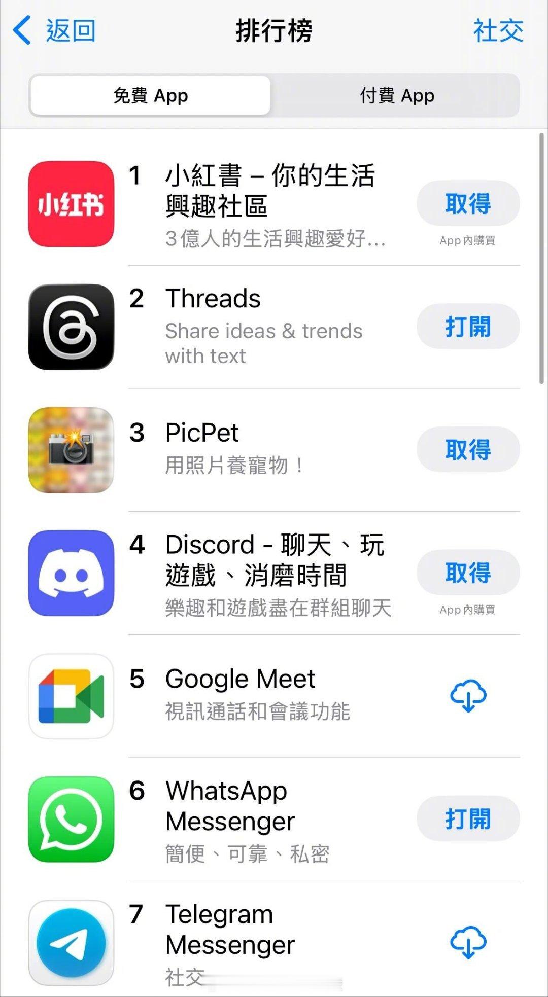 12月6日,在台湾省宣布封锁小红书后,小红书台湾地区下载量暴增,跃升至社交榜第一。其总榜排名也从第72名跃升至第8名。第5名则是一款连回大陆网络的VPN。 早晚收了你们