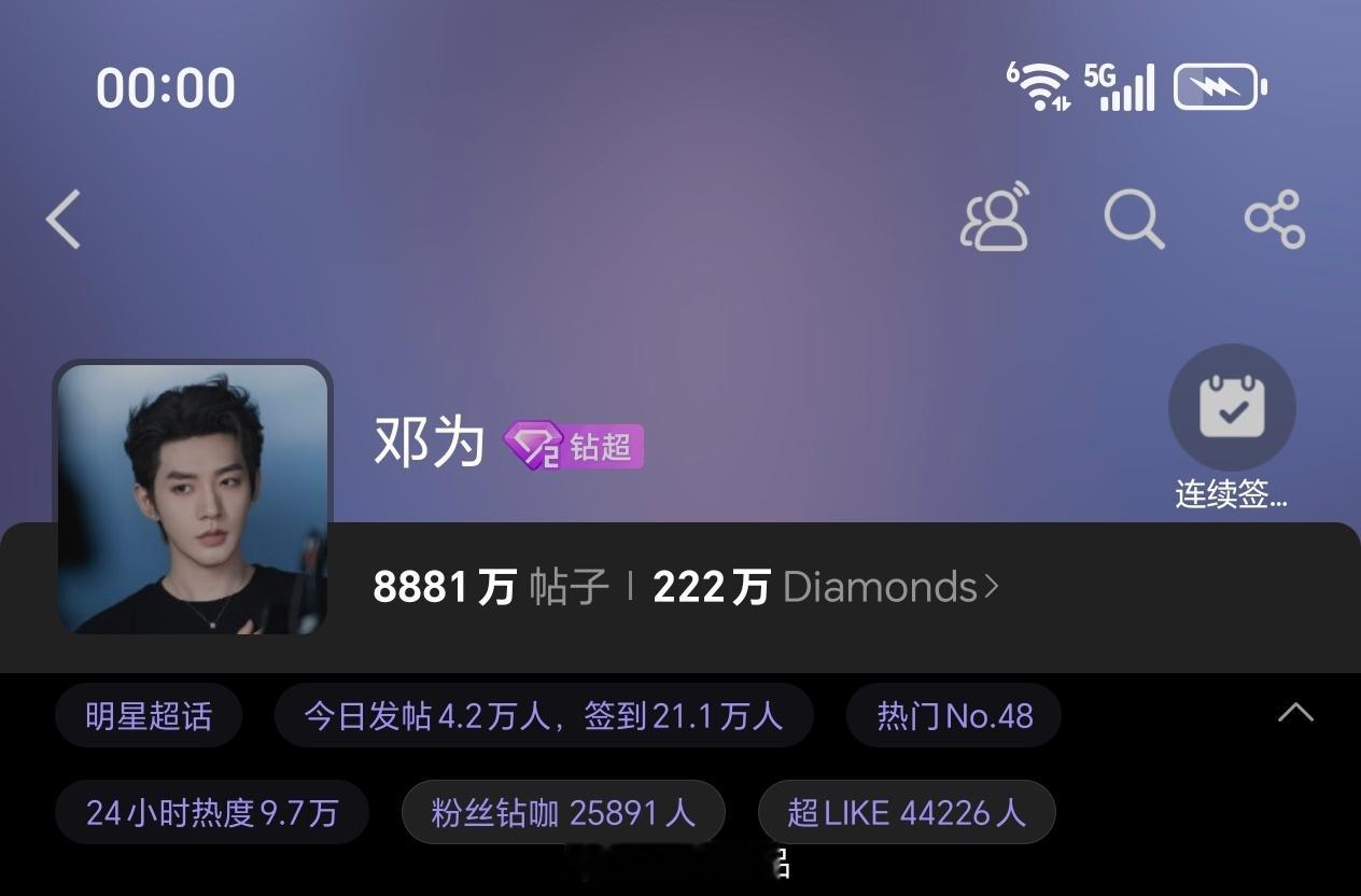 邓为超话昨日发帖4.2万+,超like4.4万+邓为尖叫之夜这次活动封神了,我为如此权威邓为粉丝也是非常给力,应援是最棒的最强大的