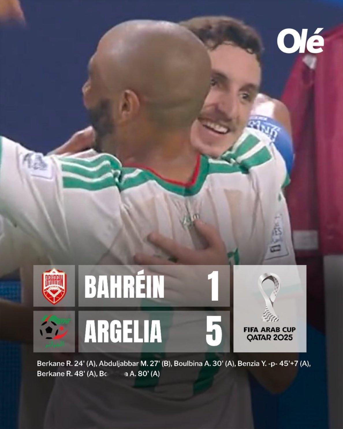 Ole | 阿尔及利亚在阿拉伯杯中大胜巴林! 🇩🇿➡️阿根廷在2026年世界杯小组赛中的对手5比1轻松击败了巴林。这支被称为“沙漠勇士”的队伍是该锦标赛的卫冕冠军。🔝他们以四分优势排名小组第一(该小组还包括伊拉克和苏丹)。阿根廷国家队2026美加墨世界杯