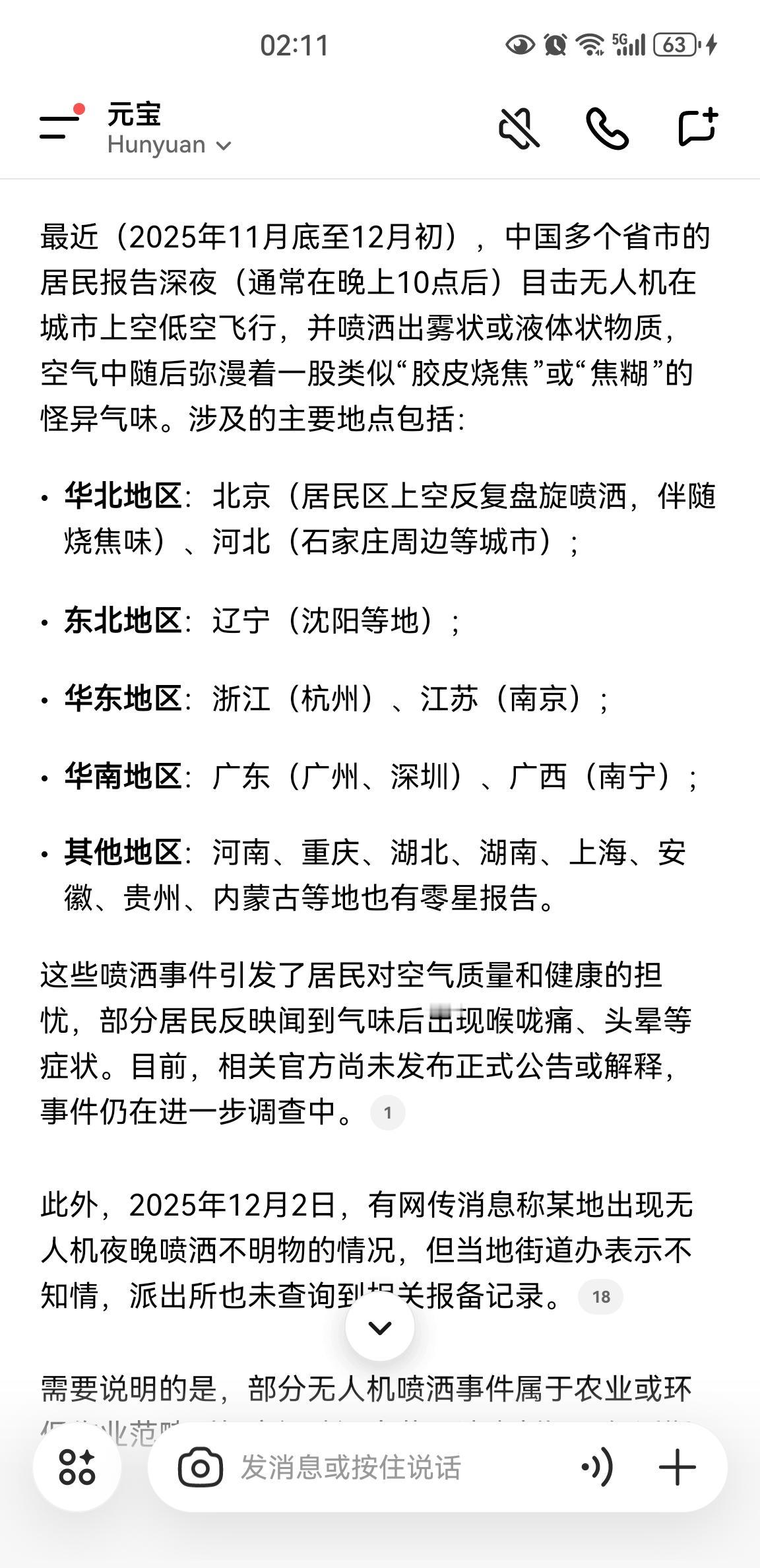 最近多地很多博主都发视频表示有不明无人机在半夜喷洒不明液体,有在农作物也有在道路屋顶等,但官方媒体没见发声,请相关部门重视小心不法分子投毒!