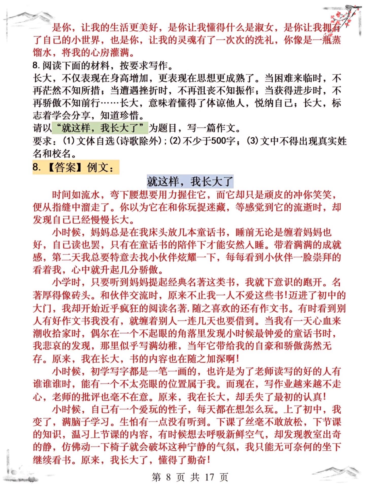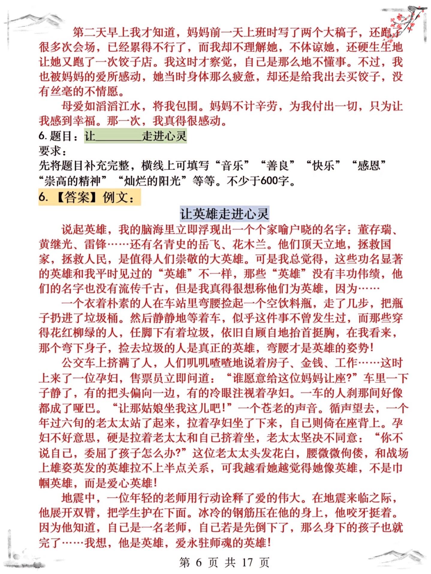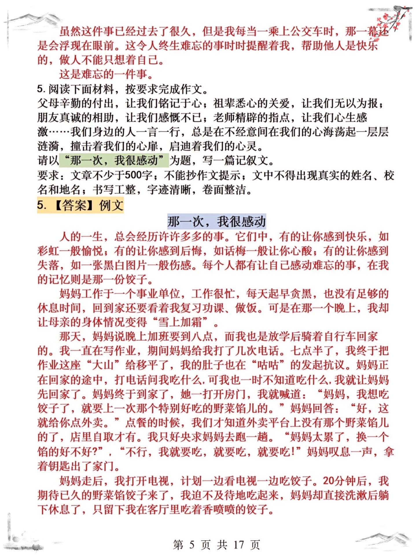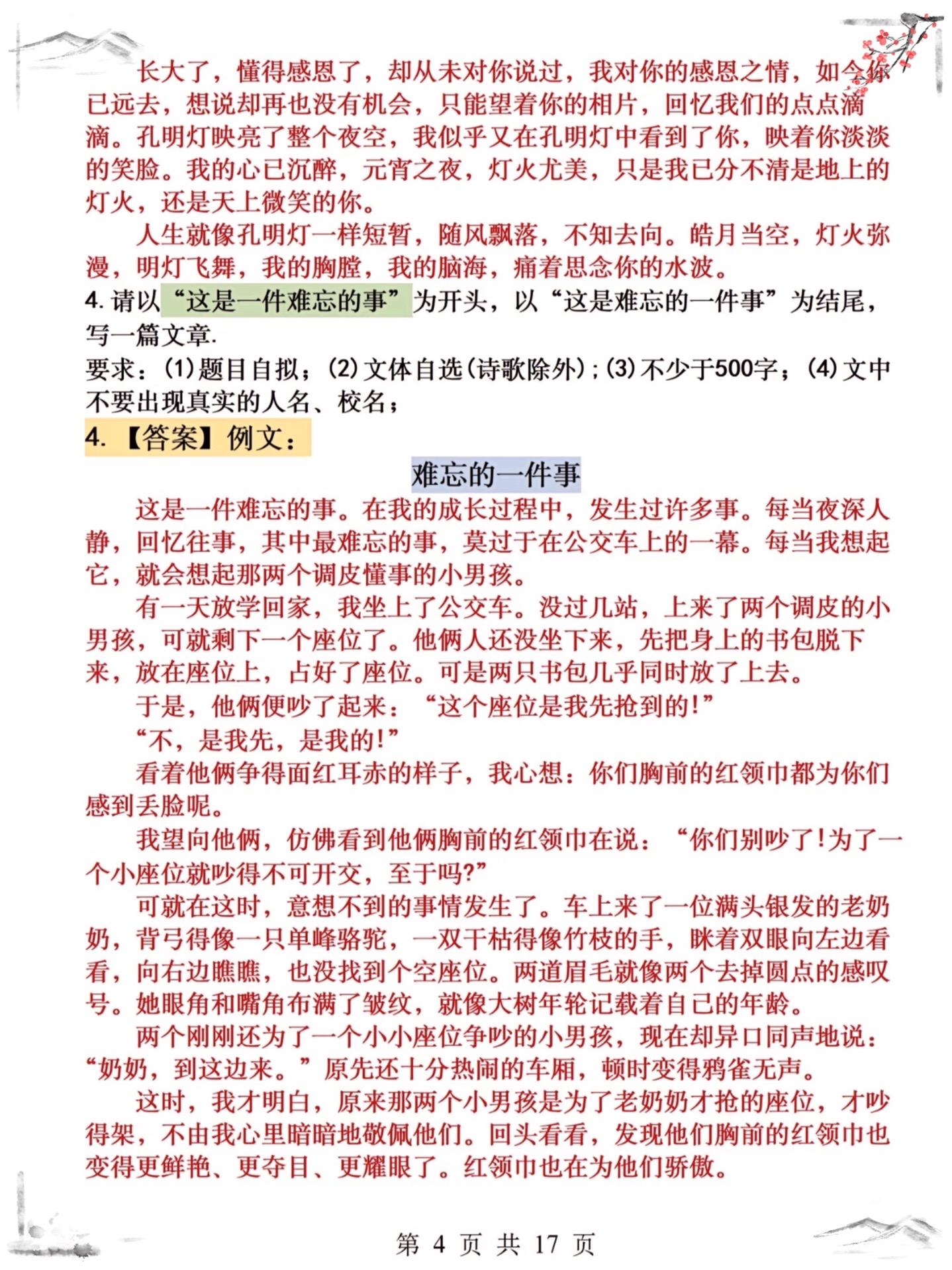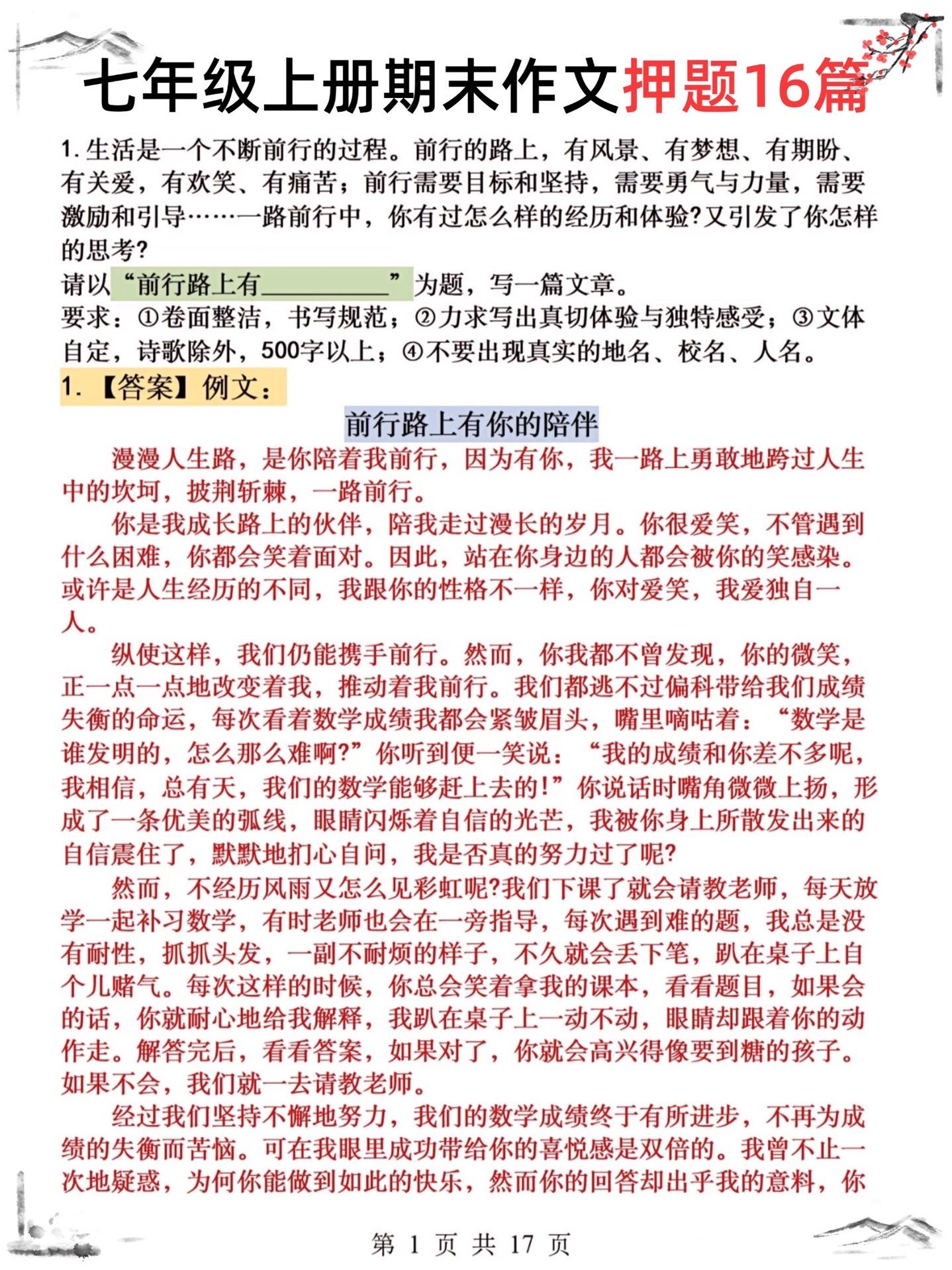 七年级上册期末作文确定就在这16篇当中。七年级上册语文期末作文押题,也就是这几篇了。家长快给孩子打印出来一份学习吧!期末考试轻松考98➕