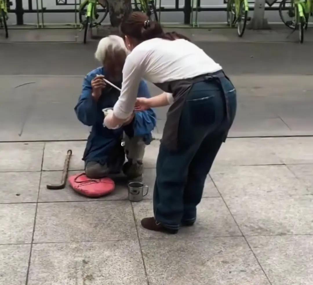一位餐饮的女老板看到老人蜷缩店外冻得发抖,心里有种说不出来的感觉,于是她端出牛肉汤和肉饼给老人吃,90度的弯腰递给老人,一个简单的动作足以证明这位女子对这位老人足够的尊重,她的教养和人品是别人学不来的,家教非常好。一碗热汤温暖一座城,这份热气腾腾的善意,让这个寒冬更加温暖,女子的善良让人备受感动和尊重,人间自有真情在,世上还是好人多,愿这位老人在未来的时候被这个世界温柔以待,愿这位女老板生意兴隆,财源广进,在以后的日子里能够帮助更多需要帮助的人,只要每个人都能献出一份爱心,那么我们的世界将会更美好。