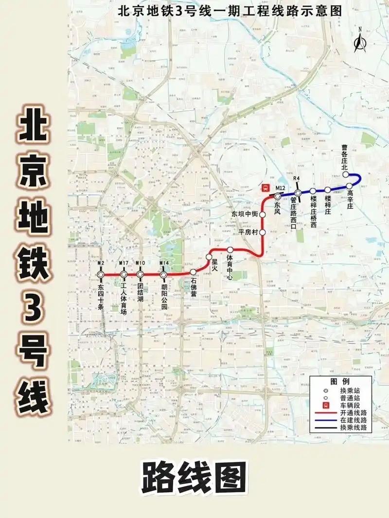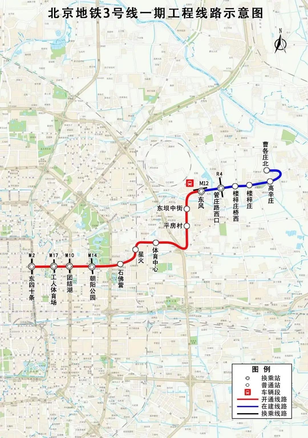 北京地铁3号线一期东延进展 北京地铁3号线一期东延段(东坝北站至高新庄站)已进入开工准备阶段,全长约6.4公里,设5座车站,从西向东依次为:‌管庄路西口站‌、‌楼梓庄桥西站‌、‌楼梓庄站‌、‌高新庄站‌、‌曹各庄北站‌。其中,管庄路西口站是R4线与3号线的换乘站,该段未来将与地铁M101线实现互联互通。 目前,该段土建施工招标计划已发布,涉及楼梓庄站至高辛庄站区间,投资约9亿元。此外,其配套的1.5公里地下综合管廊工程也已获批,总投资约1.94亿元。 需要注意的是,3号线一期东段此前因规划、拆迁及与周边项目协调等问题处于缓建状态,此次东延段的推进标志着该区域建设取得新进展。