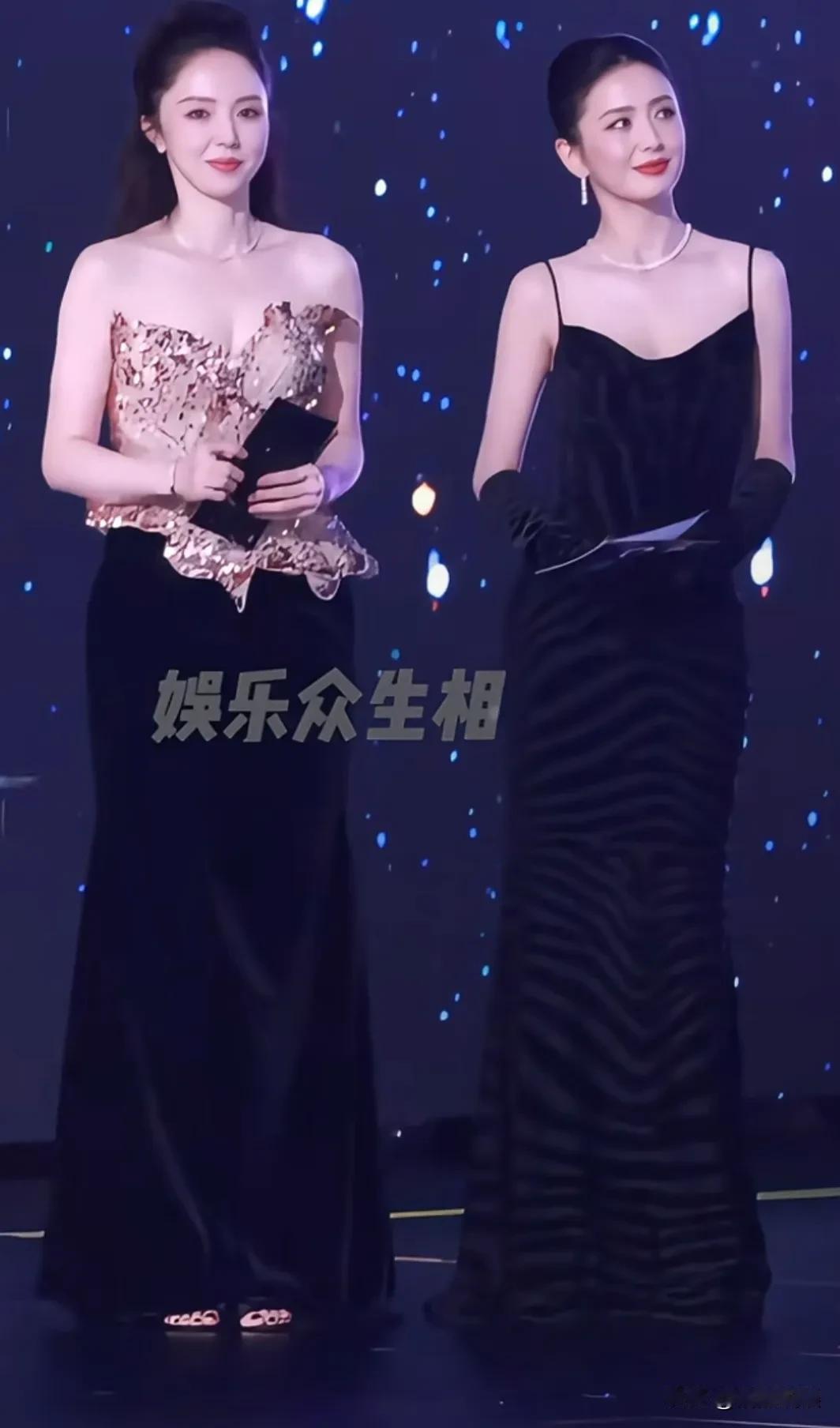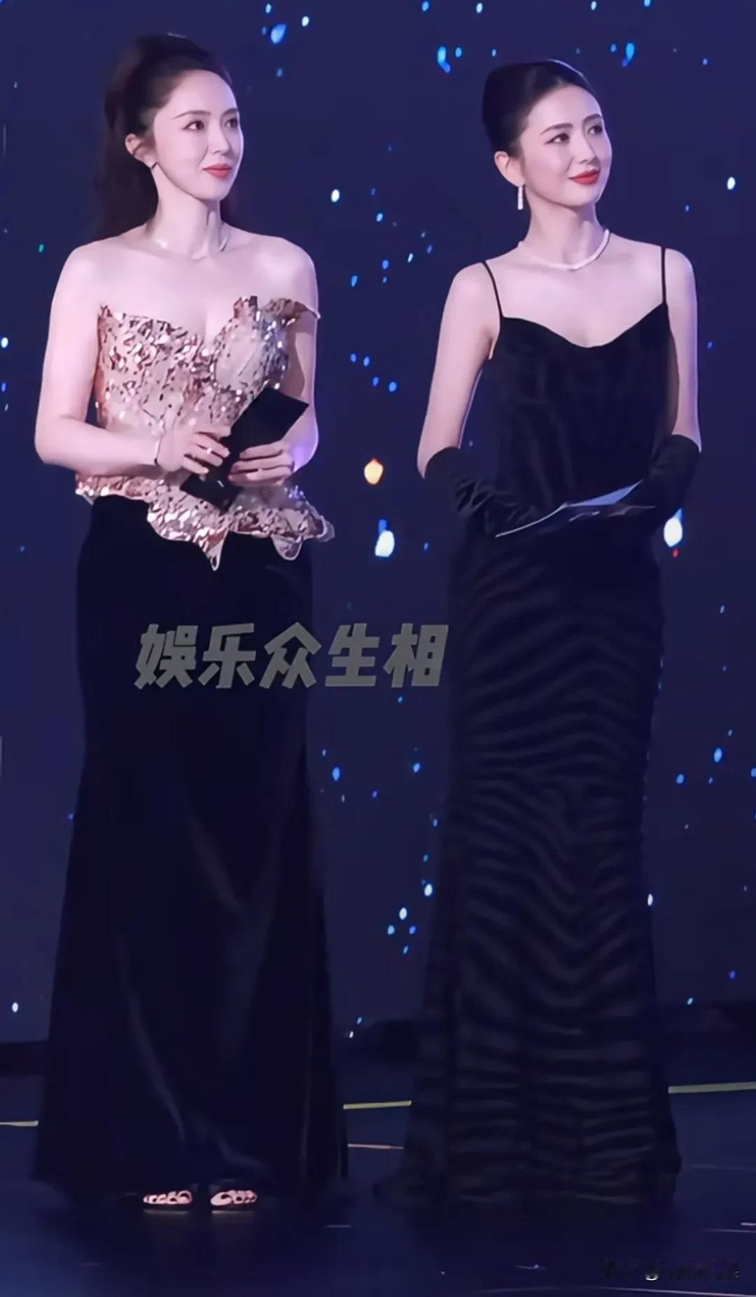 佟丽娅和董璇,我是真的傻傻分不清了,相似度99%啊,感觉现实生活中,有些双胞胎都没她们这么像,肯定是上辈子失散的姐妹这辈子相聚了。[捂脸] 佟丽娅和董璇一起现身澳门爱奇艺尖叫之夜,俩人手牵手一起上台。董璇扎着高马尾,金色低胸礼服,佟丽娅穿着黑色吊带深v,一个大方优雅,一个娇俏妩媚,姐妹俩同台,超美的画面。 看俩人侧颜的样子,几乎是一个模子出来的,一样的大眼、高鼻、小脸蛋、天鹅颈! 好有缘分的俩人,不是家人却胜似家人,姐妹俩一直互相鼓励,互相支持,这样好的朋友关系,让人羡慕也让人感叹,只有心地非常善良的人,才能做到如此好吧。 还是小酒窝幸福啊,两个如此相似的人,竟然都是她的妈妈,一个亲妈,一个干妈。[呲牙]