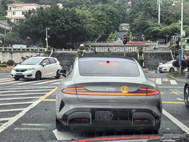 偶遇小米汽车 偶遇小米su7,不得不说尾灯很有辨识度,远远看着就很帅,撵半天没撵