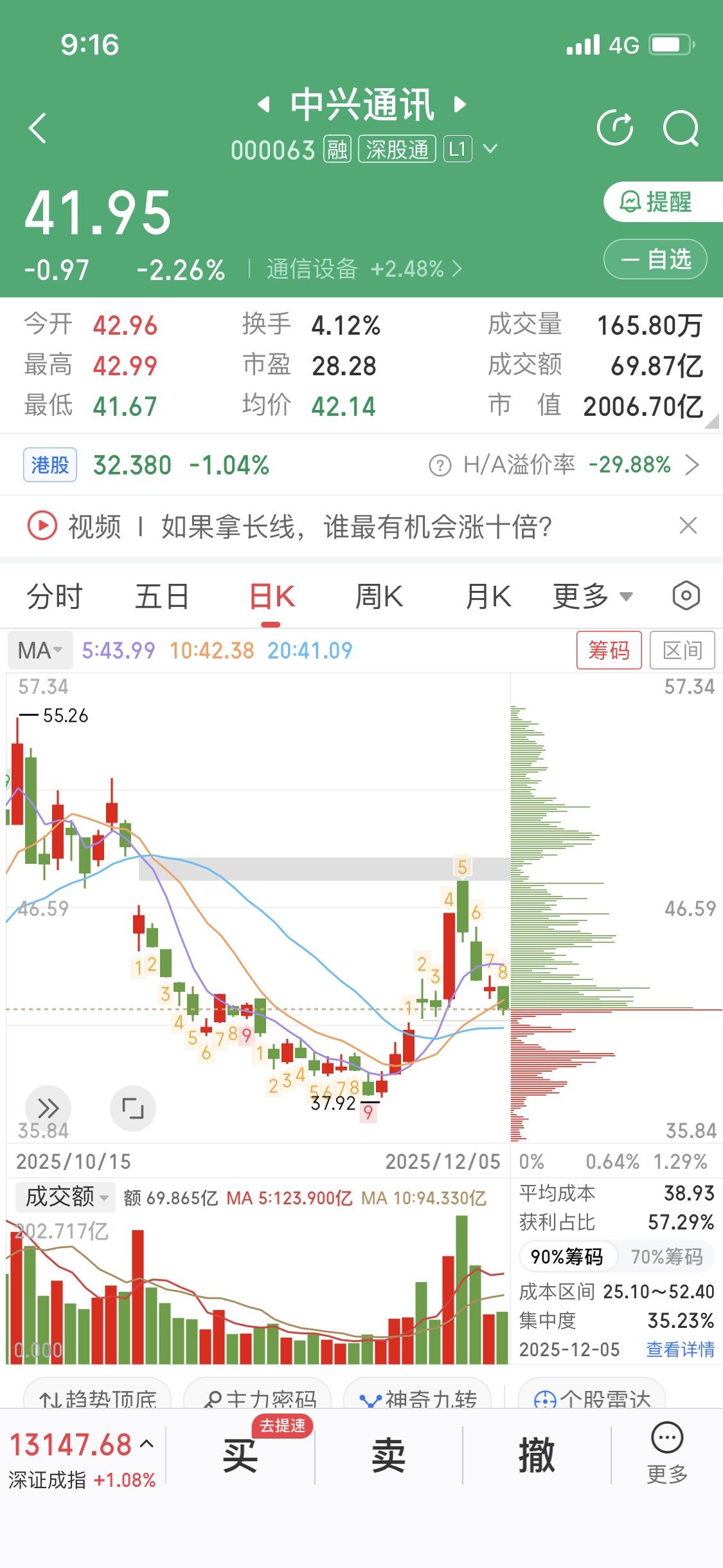 12月7日这周,不少股票值得关注,中兴通讯绝对算一个。上周五美股三大指数全线收跌,科技股成重灾区,像特斯拉暴跌超6%,市值蒸发2729亿元。不过中概股韧性凸显,纳斯达克中国金龙指数微跌0.30%,百度还逆势涨超2%。 再看A股,上周五沪指走出小阳线结束3连阴,和前面低点形成双底结构,还守住了3900的关键位置。如果下周能放量上攻,站上20日均线,中线走势就重回多头趋势。中兴通讯在这样的市场环境里,或许会迎来机会,下周重点盯着它,说不定有惊喜。
