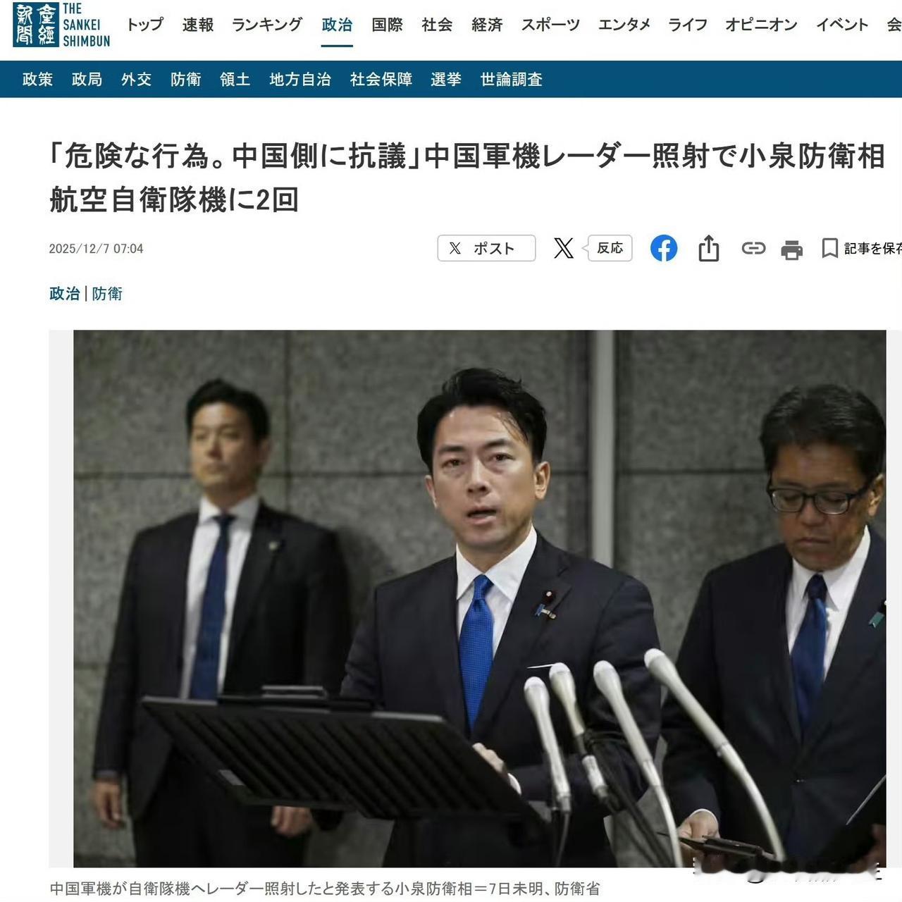 “他又照我了!”知道的是小日子在抗议,不知道的以为他在撒娇! 这不日本媒体凌晨就动起来了,纷纷报道歼-15两次用雷达照射锁定了日海自的F-15J。唯一不同的是每次都是等到工作日才发,今天大周六的就急急忙忙的发出来了。 不用问呢,肯定是向全世界诉委屈,你看他又用雷达照射我了,一次又一次的,典型的挑了事又要说自己是受了欺负的。你咋不说说歼-15为啥要照射你呢,你要好好的保持安全距离会有人上去惹你吗。