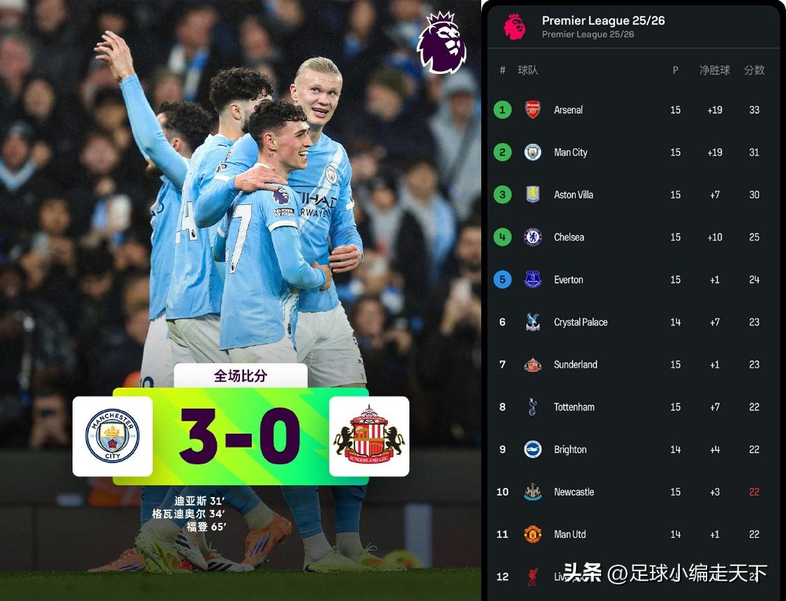 现在看瓜瓜欧冠全替补真是下了一手好棋啊,一场无关痛痒的欧冠失利换来联赛三连胜,太值了! 其实曼城最可怕的地方就是当你以为他不行了,当你以为对手都研究透了瓜帅的战术的时候,经过一段时间的调整,曼城又杀回来了,还是那个熟悉的曼城,依旧统治力十足。 话说今年英超也是有趣,先是利物浦风光无限,然后到阿森纳“冠军到手”,只能说曼城是这些年以来最不被看好的一次了,然而一看积分,曼城也就落后阿森纳2分。