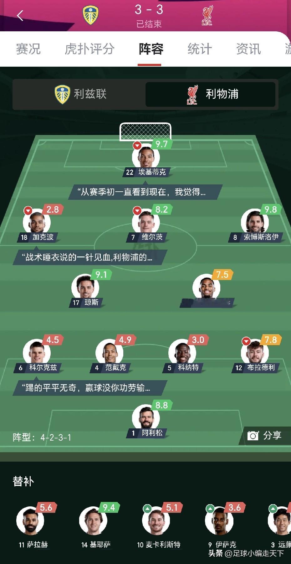 斯洛特还不下课的话,利物浦真要废了,这个赛季红军的防守堪称灾难。 进两个就收缩防守,守又守不住,提前10分钟就拖时间,这还是那个利物浦吗?多少年没有看到利物浦这么狼狈,可以输,不能这么怂啊,还是踢利兹联啊?这也能做利物浦教练? 我是真看不出光头的战术,感觉就是要啥没啥,最让人不能接受的就是一领先就想苟住,这还是利物浦吗,现在只要一落后基本就没了,不像以前,80分钟落后一点都不慌。 利物浦现在丢三个球是一件很随意的事情,没防守。斯洛特体面点自己辞职吧!带着加克波和助教团队一起走吧。