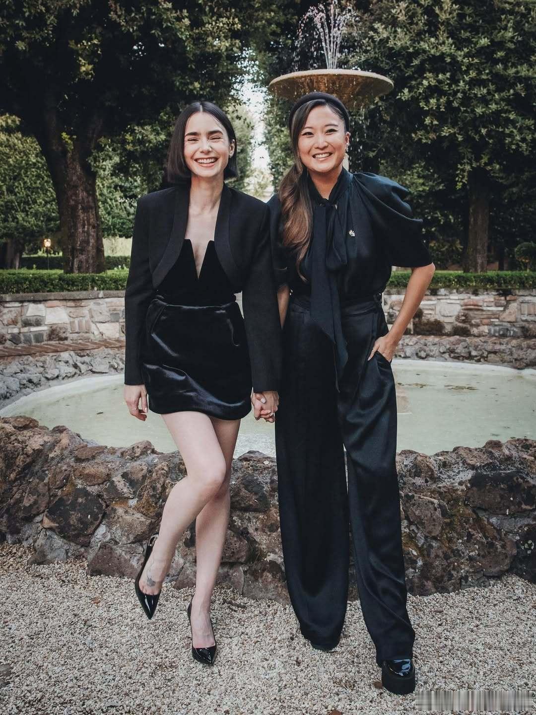 Lily collins莉莉柯林斯分享和戏里戏外都是好姐妹的Ashley Park的牵手照,两人下周将会开始《艾米丽在巴黎》第五季的宣传