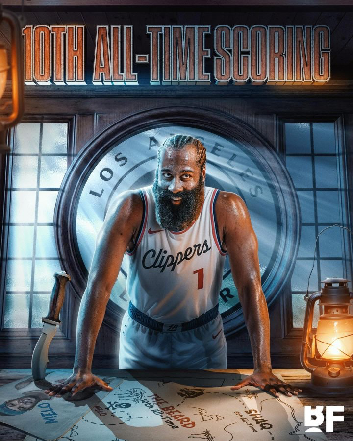 快船vs森林狼哈登NBA历史得分榜第10位哈登生涯总得分超越卡梅隆-安东尼