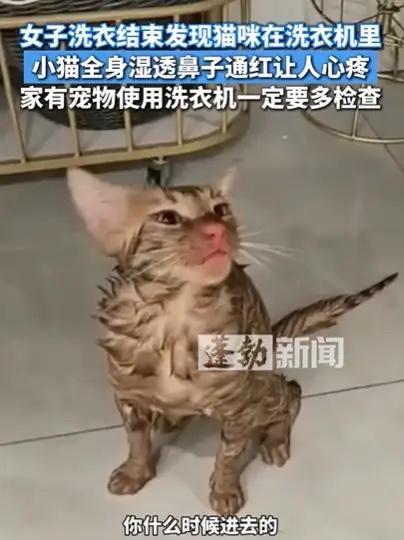 “可怜!”江苏苏州,女子用洗衣机洗衣,听到洗衣机有异响,她以为是硬币,结果,洗完后,竟然在洗衣机里,发现一只猫咪,全身湿透鼻子通红,让人心疼,女子坦言:不知道猫咪进去了,吓死我,不敢动它。 这事想想都让人后背发凉。洗衣机转起来的时候力道多大啊,猫咪在里面被卷着转了一通,想想都觉得疼。女子打开盖子看到那只浑身滴水、鼻子通红的小猫时,估计魂都快吓飞了——谁能想到好好的洗衣机里会藏着个小生命呢?她吓得不敢碰,也是真慌了,毕竟那场景太冲击。 网上看了这事的人,心都揪着。有人说:“这猫咪命太大了,还好没出大事。”也有人替女子说话:“谁家洗衣机用之前还特意翻一遍啊,确实难想到。”还有人提醒:“养宠物的真得注意,尤其是小猫小狗,就爱钻各种缝隙,洗衣机、衣柜、抽屉,稍不留意就可能出危险。” 我瞅着那猫咪的样子,真是又心疼又庆幸。它肯定吓坏了,在黑漆漆的滚筒里被水冲着、被衣服裹着,那种恐惧可想而知。女子也是无辜,正常用洗衣机,谁能料到会有“不速之客”藏进去?但这事也给养宠物的人提了个醒:小动物好奇心重,总爱钻犄角旮旯,用电器前多瞅一眼,说不定就能避免一场意外。 之前也听过类似的事,有小狗钻进微波炉,有小猫躲进冰箱,都是因为主人没留意。这些小家伙不懂危险,全靠主人细心。就像网友说的:“养它们就得对它们的安全上点心,多一分检查,少一分意外。” 还好这只猫咪最后没事,女子后来也赶紧找了人帮忙照顾。但想想如果当时没及时发现,或者洗衣机转的时间再长点,后果真不敢想。养宠物是缘分,也是责任,不光要给它们吃的喝的,更得时时留意它们的小举动,别让好奇心变成了危险的源头。 各位读者你们怎么看?欢迎在评论区讨论。