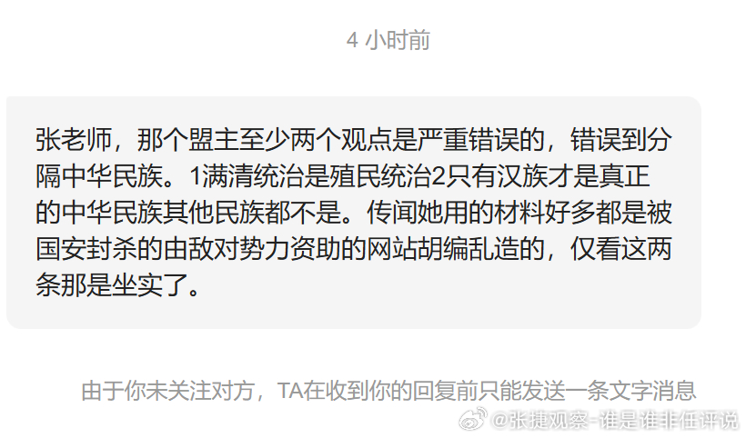 #张捷盘历史# 对满清的仇恨极端化,背后可不光是满汉矛盾,还有西部的绿教。清朝没有让它们变成斯坦,它们屠杀汉族比满清厉害多了,清朝屠杀了它们当中的坏分子,现在都非常仇恨。所以号称极端H汉的,可能是绿色的胡人,问题比大家想的要复杂得多!而且有人讲西方伪史不是为了宣扬中华文明领先,而是为了绿教,中国的历法变成绿教来的了,绿教文明才是世界高地。现在满汉的矛盾是比较缓和的,西部针对满汉的一些极端势力,才是否定汉族主体民族地位的,也否定五族共和满族的中华民族地位的,在挑唆矛盾。