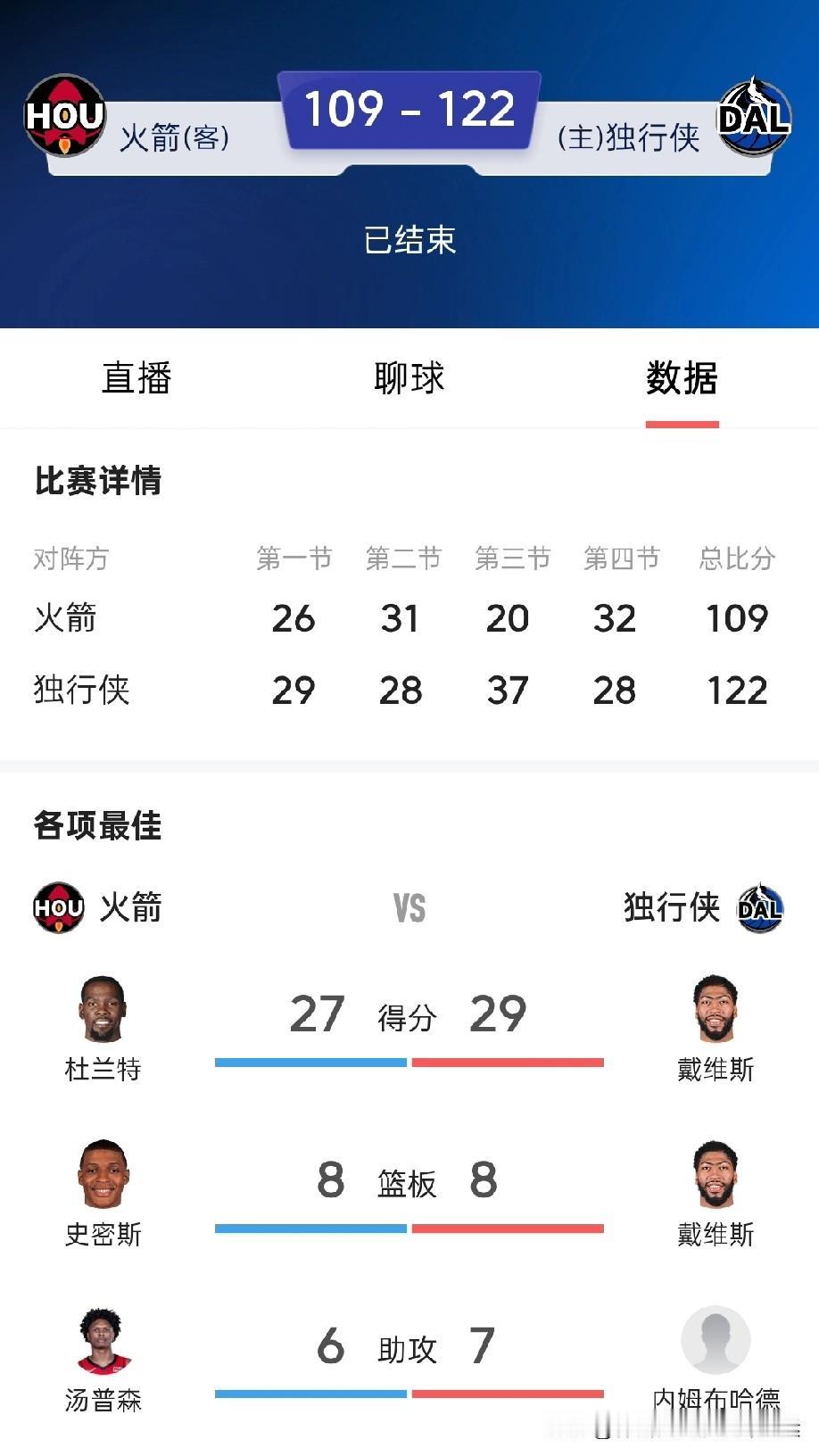 火箭输的一塌糊涂,109-122输给独行侠真是恶心透顶。无语啦让我。