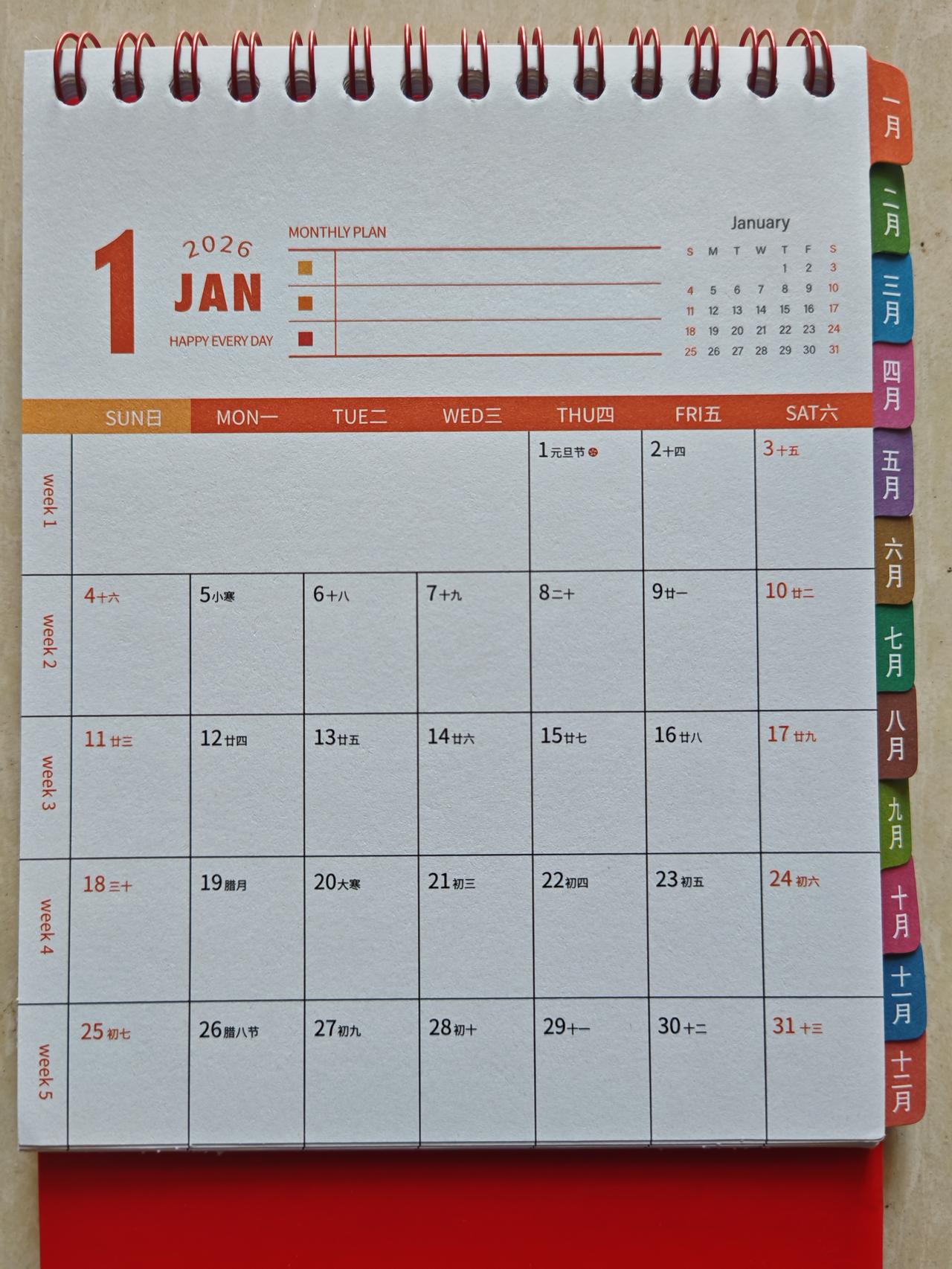 2026年元旦节快到了, 买的2026年日历本到了,我却越来越不期待2026年元旦节了! 1.今天查了一下,2026年不一般,按照农历传统,这一年是老人嘴里念叨的“红马年”,到底藏着什么玄机? 2026年农历为丙午年,“丙”在天干中属火,火对应红色;“午”在地支中对应生肖马,拼起来就是“红马年”。这种组合每60年才轮一次,上一次红马年还是1966年。 按照我国居民人均预期寿命为78.6岁来算,我们这代人可能一生当中只会碰到一次“红马年”,属马的人本命年穿红,则取“火火相生”的安定寓意。 2.现在对新年越来越不期待了,除了年龄和发际线的增长,找不到其他合适的理由。新的一年即将到来时,我更多的是茫然和无措,而不是期待和希望。 我开始害怕那些亲戚们盘问式的“关心”,也害怕新的一年公司效益不好,减员降薪。有时候允许自己不期待也不是坏事,愿你我能以自己的节奏,走在属于自己的时间线上。不期待,不依赖,不幻想,过好当下的每一天。