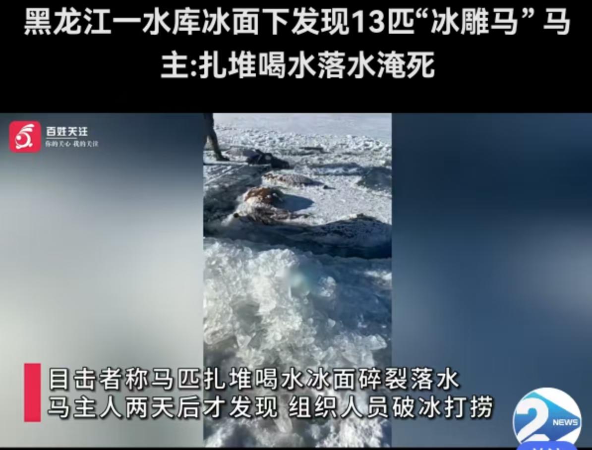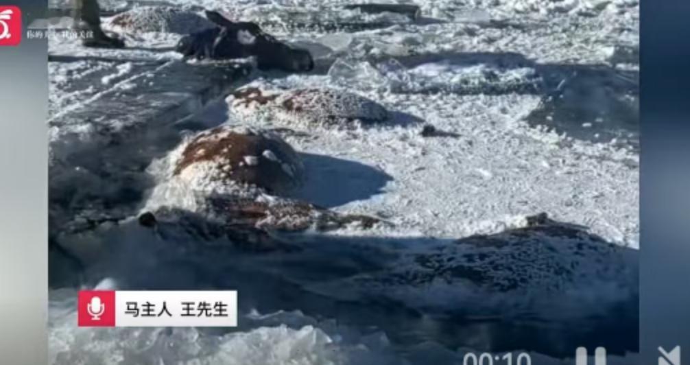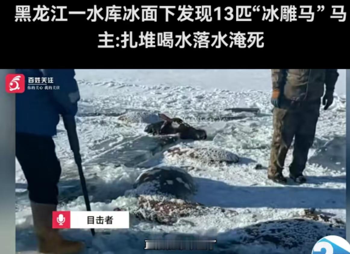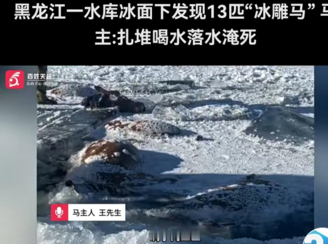 12月的黑龙江黑河,冷得像一块铁。12月5日,嫩江市七星泡农场的东风水库,冰面像一面镜子,却映出了一幕让人心碎的场景。13匹马,一动不动地“站”在冰里,身体被冻结,只露出僵硬的背脊。 它们不是在摆造型,它们死了。两天前,这片冰面还是它们的饮水处,如今却成了它们的坟墓。 目击者说,悲剧发生时,马群像往常一样,扎堆走到水库边喝水。北方的冬天,水库会结上一层厚冰,但总有边缘地带或者冰层薄弱的地方。或许是领头的那匹马没踩稳,或许是后面的马挤得太凶,只听“咔嚓”一声脆响,冰面碎裂了。一匹、两匹、十三匹,惊慌失措的马匹瞬间坠入刺骨的冰水中。 零下几十度的严寒,是世界上最快的凝固剂。它们甚至没来得及挣扎太久,就被寒冷和冰水夺去了体温,最终被牢牢封死在重新冻上的冰层里。 最让人揪心的是马主人。一位年过七旬的老人,两天后才发现自己的马群不见了踪影。当他赶到水库边,看到那13个熟悉的身影以这种方式定格时,该是怎样的绝望?有网友估算,13匹马,价值三十多万。对于一个靠养殖为生的农户来说,这不仅仅是三十多万的惨痛损失,更是他赖以生存的希望,一下子被冰封了。 现场,老人组织着人员破冰打捞。冰镐砸在冰面上,发出沉闷的声响,每一下都像砸在人心上。他们不是在捞财产,是在打捞自己一年的心血,是打捞未来的生计。 这起意外,在网上也炸开了锅。有人同情老人的遭遇,觉得天灾无情;也有人质疑,马这么值钱,为何能乱跑,主人是不是太不上心了?这种争论,其实没有意义。在广袤的东北农场,散养马匹是常态,谁也无法24小时盯着每一匹牲口。这场悲剧,更像是一记警钟,敲给所有在严寒地区从事养殖的人们。 它提醒我们,大自然的美丽与残酷,往往只有一冰之隔。看似平静的冰面下,可能隐藏着致命的陷阱。对于养殖户来说,冬季的牲畜管理,需要比平时多出十倍、百倍的小心。一个疏忽,一个侥幸,带来的可能就是毁灭性的打击。 那13匹被冻在冰里的马,最终会被打捞上来。但这个冬天,对于七星泡农场的这位老人来说,注定是漫长而寒冷的。那片冰面,也成了他心里一道难以愈合的伤疤。希望这样的悲剧,能成为最后一次。希望每一个靠土地和牲畜为生的人,都能平安度过每一个严冬。 以上内容仅供参考和借鉴