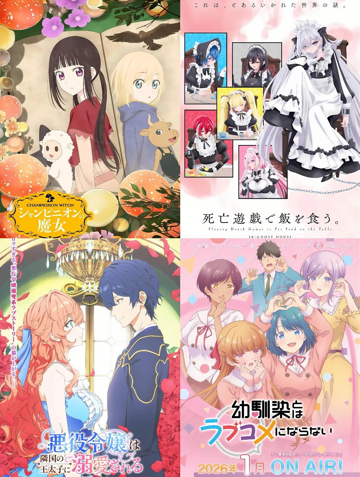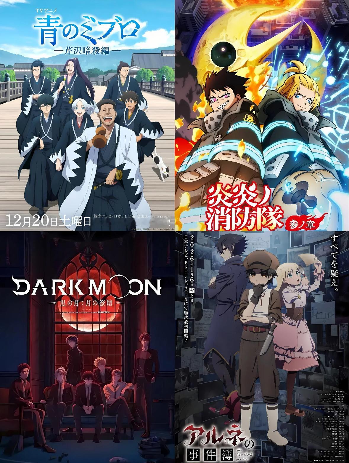 2026年1月看什么番?这里有没有你期待的啊2025动漫嘉年华动漫点评团海外动漫名场面 【P1】现在多闻君是哪一面!?葬送的芙莉莲 第二季恋爱吧,冒牌天使!透明男与人类女【P2】相反的你和我金牌得主 第二季皎洁迎宵之月终究,与你相恋。第二季【P3】花样少年少女跃动青春第二季超时空辉耀姬!棱镜恋曲【P4】地狱乐Fate/Strange Fake咒术回战 第三季我推的孩子 第三季【P5】蘑菇魔女以死亡游戏为生。被邻国王子溺爱的反派女主和青梅竹马之间不会有恋爱喜剧【P6】优雅贵族的休假指南。异世界的安泰全看社畜打工仔的拷问日常异国日记【P7】青之壬生浪第二季炎炎消防队三之章第2部分DARK MOON -黑之月:月之祭坛-阿尔涅的事件簿【P8】非人学生与厌世教师能帮我弄干净吗?魔都精兵的奴隶 第二季厄里斯的圣杯【P9】午夜的倾心旋律身为魔族的我想向勇者小队的可爱女孩告白阿公主大人,接下来是“拷问”时间 第2季勇者之屑【P10】死亡账号魔术师库诺看得见一切黄金神威 最终章火喰鸟 羽州褴褛鸢组【P11】小伽椰并不可怕地狱老师新作 第2部分贵族转生 ~得天眷顾一出生就获得最强力量~卡片战斗先导者 Divinez Deluxe 幻真星战篇【P12】为疼爱最推的义兄,我决定长命百岁!极速车魂 第三季泛而不精的我被逐出了勇者队伍勇者处刑 惩罚勇者9004队服刑记录