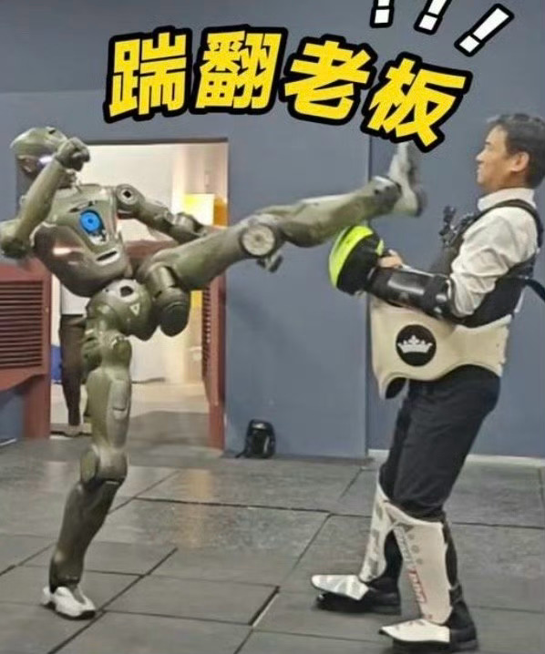 这一脚多少带点个人情绪了是吧?人形机器人一脚踹翻自家CEO