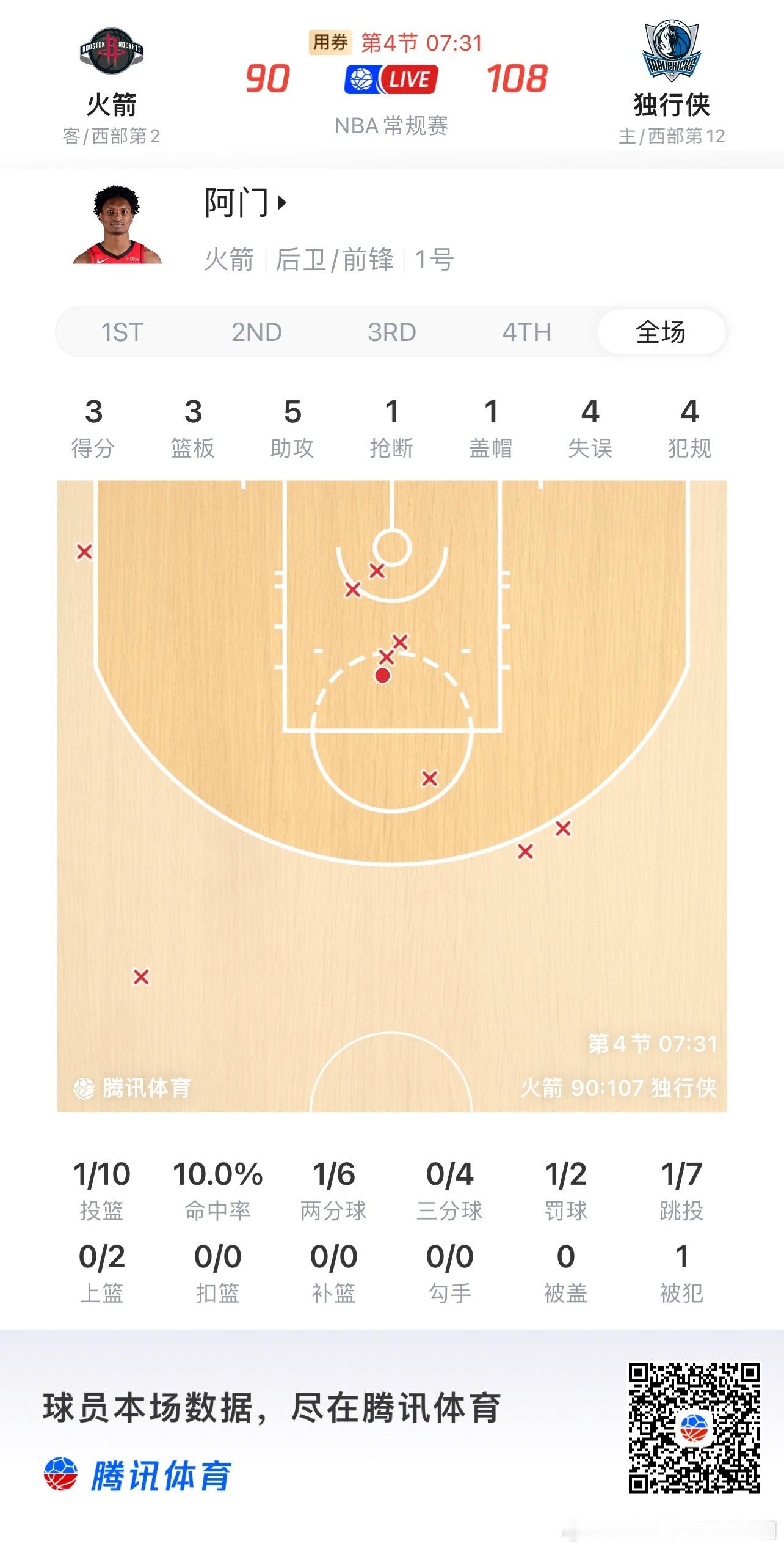 太意外了,火箭109-122不敌独行侠,这3位球员必须为输球负责!1. 阿门,