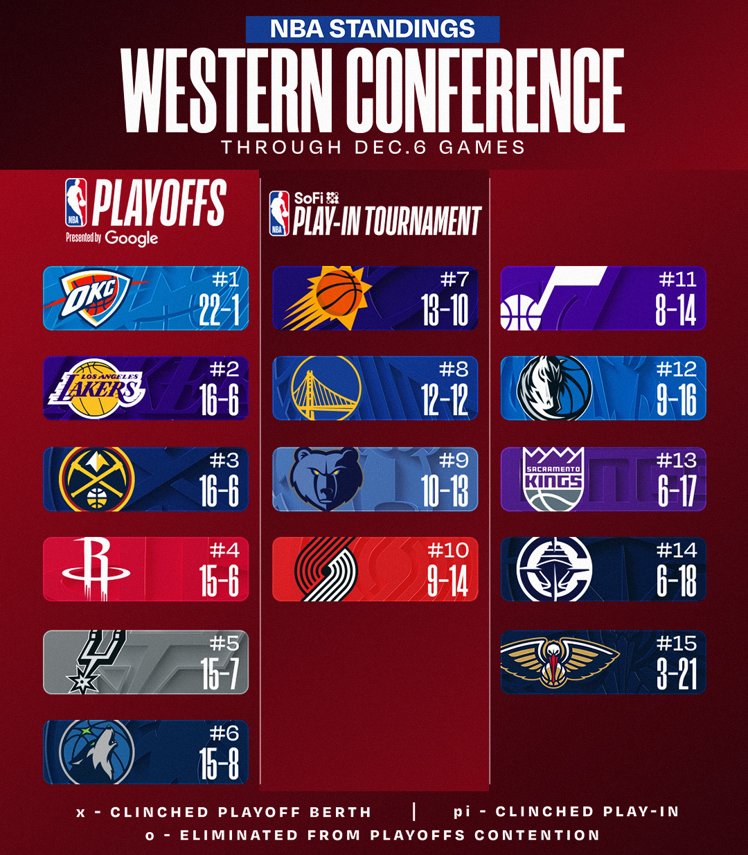 今日赛后东西部排名更新,湖人稳住第二。NBA