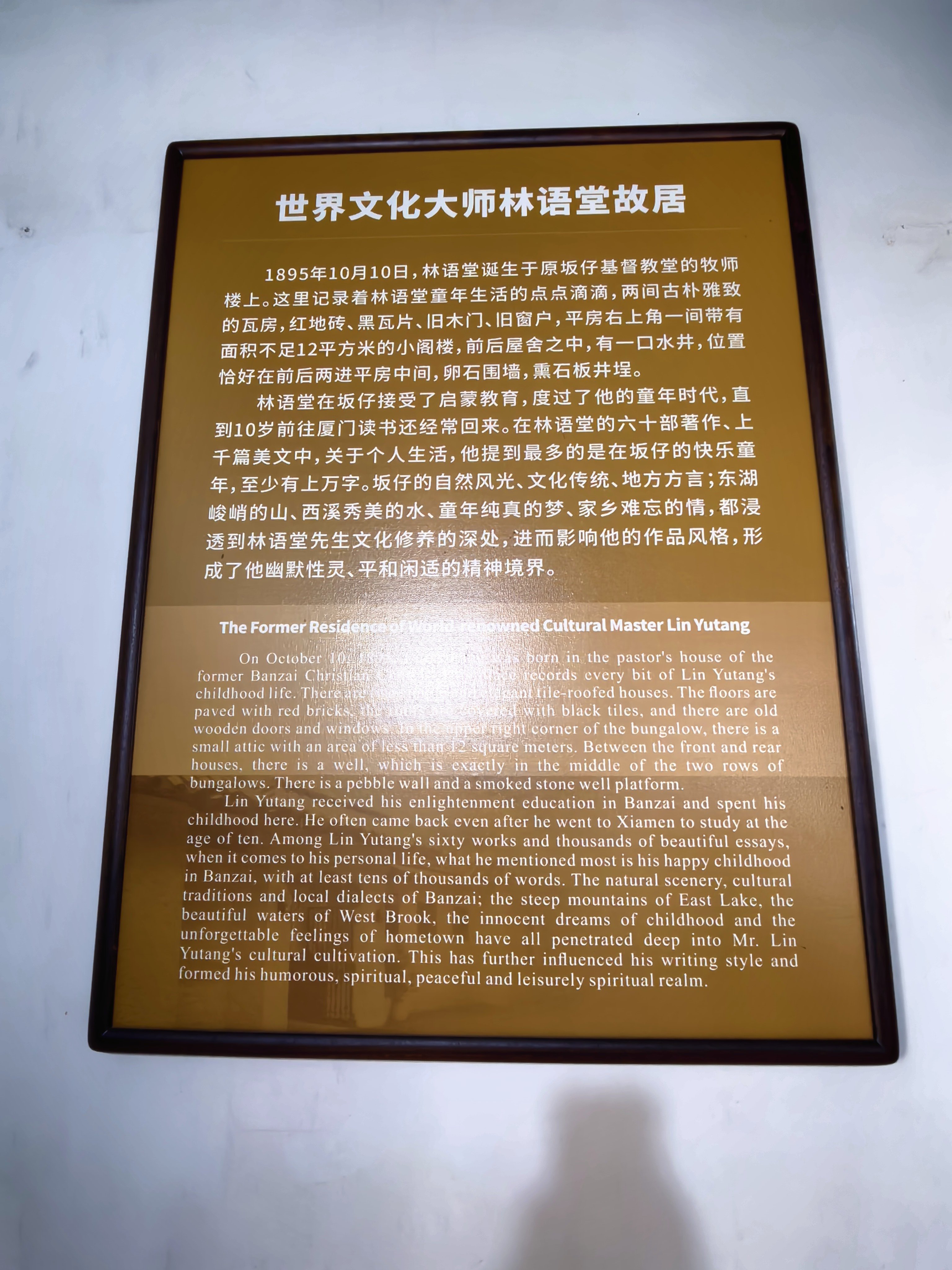 若诸位要寻一处最能窥见林语堂那“幽默闲适”灵魂本源的地方,莫过于闽南平和县坂仔镇上的那座老屋了。人说“一方水土养一方人”,这话放在林先生身上,再贴切不过。这故居修得老实,白墙灰瓦,一板一眼都是闽南旧时风貌,里头陈列的文稿、旧物,倒像他文章里的标点——不多不少,恰能勾出一幅从坂仔走向世界的风趣长卷。你且看那屋檐下,仿佛还能听见童年语堂的笑语。他总说:“我的家乡是天底下最好的地方。”这话里可没有半分夸张,只有一团暖洋洋的、自得其乐的诚恳。坂仔的青山绿水,不但养人,更养心;看来他那“两脚踏东西文化”的从容底气,早就在这田间溪头、风晨月夕间埋下了种子。所以他说人生快事,无非“宅中有园,园中有屋,屋中有院,院中有树,树上见天,天中有月”——这般境界,故居的小院里,隐约就能寻着影子。如今这文化园,围着老屋添了文学馆、体验区,倒像给一坛老酒配了几碟小菜,让人更可细品其醇。临行时忽想起先生妙语:“人生在世,还不是有时笑笑人家,有时给人家笑笑。”站在这故居前,仿佛他也正隔着岁月,冲你幽默地眨眨眼呢。#新质福建万千气象#