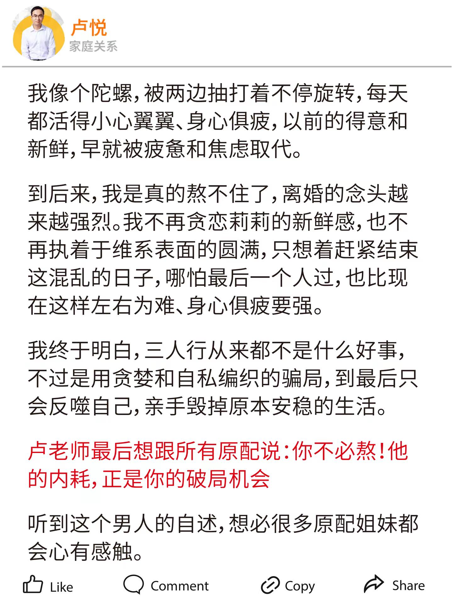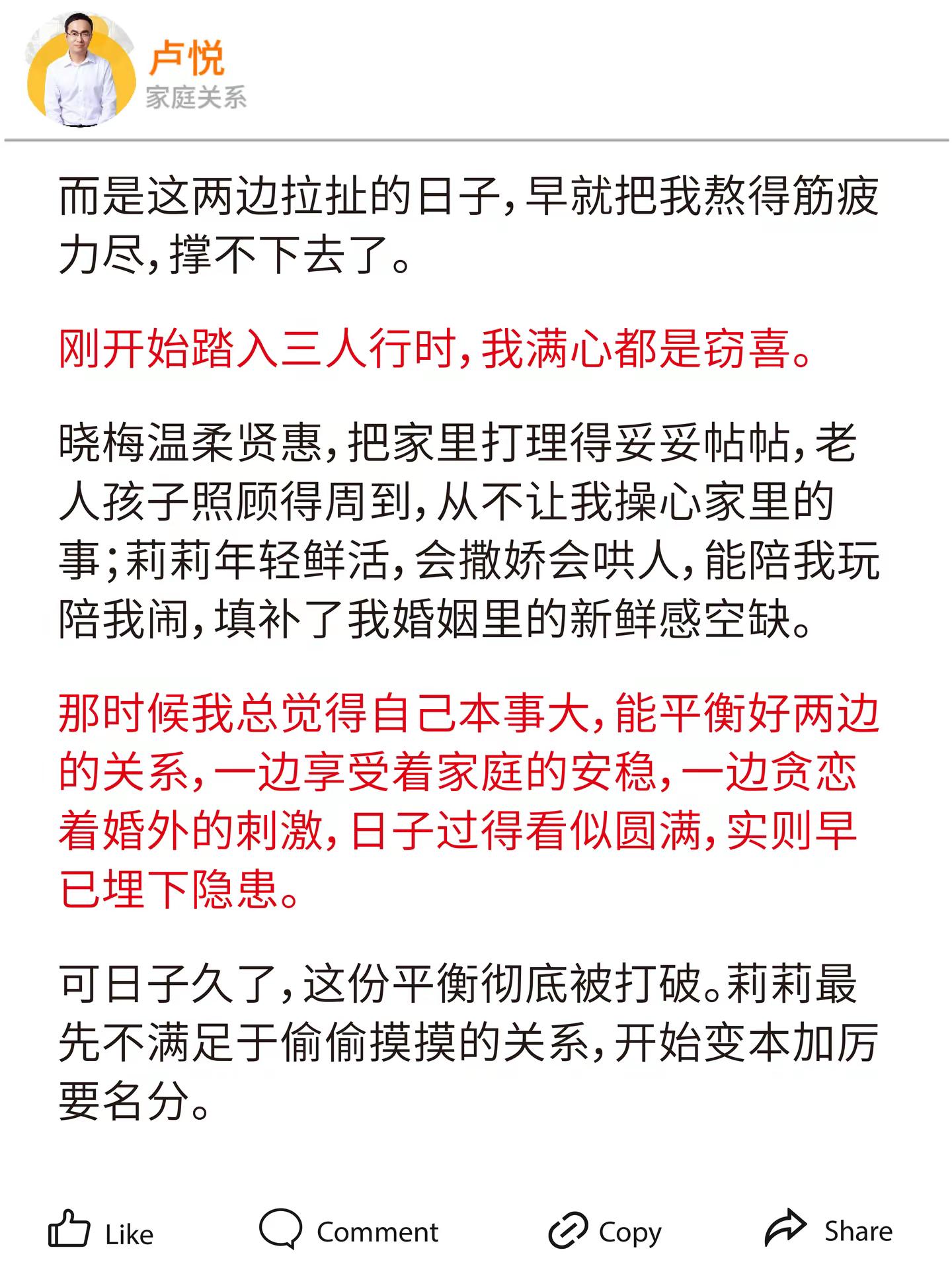 背叛男人自述:三人行越久,我越想离婚!。心理学 婚姻情感家庭