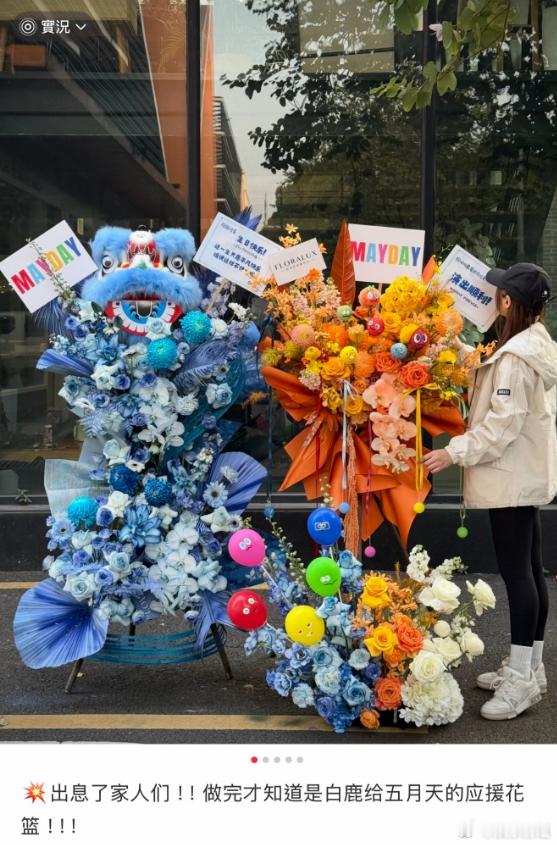 白鹿给五月天送花篮 白鹿给五月天送了应援花篮,“祝呵呵最爱的五位老师演出顺利”,白鹿是天使人美心善,太宠闺蜜了~