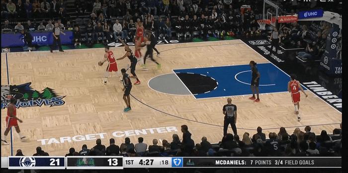 非常有意思的一个进攻回合,按照原定战术布置,应该是借柯林斯和祖巴茨梯次掩护跑到弧