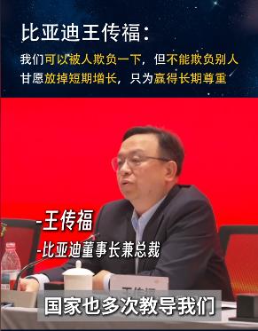 能力越大责任越大,比亚迪总裁王传福在股东大会再度哽咽,们现在已经是龙头企业,要做好榜样。因为我们是龙头老大,我们可以被别人欺负一下,但我们不能欺负别人 12月5日比亚迪临时股东大会上,王传福那句带着乡音的,我们可以被别人欺负一下,但不能欺负别人,没有激昂的口号,却让在场不少人沉默。 这位深耕新能源行业二十余年的企业家,说话时指尖轻轻叩着桌面,语气里的恳切,比任何销量数据都更能说明这家龙头企业的处境。 这句话的分量,要放在当下新能源行业的竞争语境里才看得懂。 行业早已从“拼电动化普及”进入“拼生存策略”的阶段,有的品牌把发布会变成“竞品吐槽大会”,拿对手的技术短板做笑点。 有的靠“赔本赚吆喝”的低价策略抢份额,把单车利润压到负数。 在这样的乱象里,比亚迪“只说自己好,不提同行短”的规矩,就成了“不合群”的坚守,短期代价显而易见。 王传福的“能被欺负”,本质是对短期利益的主动让渡,所谓的“委屈”,从来不是销量波动本身,而是坚守原则必然要承受的行业挤压。 当同行靠拉踩博眼球获得流量时,比亚迪要靠技术研发赢得认可,投入周期更长、见效更慢;当对手靠低价倾销抢占市场时,比亚迪要平衡利润与研发投入,不能随意打破价格体系。 这种“不跟风”的克制,让它在短期销量比拼中显得被动,但恰恰是这种被动,守住了行业的基本底线。 如果龙头企业都陷入恶意竞争,最终只会拖垮整个产业链的创新能力,这种坚守的底气,来自对“龙头责任”的清醒认知。 王传福反复强调“要做好榜样”,不是空喊口号,而是摸到了行业发展的核心逻辑:真正的龙头不是“赢过所有对手”,而是“带着行业走对路”。 新能源行业的根基是技术创新,不是营销炒作;长久的竞争力靠产品价值,不是价格战。 比亚迪宁愿接受短期销量波动,也不卷入内耗,正是因为清楚:一旦龙头企业放弃底线,中小企业会更快陷入“比烂”循环,最终损害的是整个行业的信誉。 有人觉得“能被欺负”是软弱,实则是对龙头担当的误读,对于比亚迪这样的企业,“不欺负别人”是底线,“能被欺负”是格局。 它不需要靠贬低同行抬高自己,因为二十多年积累的技术储备足够支撑产品力;它不必靠低价抢份额,因为全产业链布局带来的成本优势有足够缓冲空间。 王传福说“丢掉短期业绩换长期口碑”,本质是算清了一笔大账:龙头企业的价值,从来不是某一年的销量冠军,而是能否为行业建立可持续的竞争规则。 这种坚守正在重塑行业的底层逻辑,当比亚迪把资源持续投入到刀片电池升级、智能化场景研发上时,其实是在拉高行业的技术门槛;。 就像王传福在会上说的“国家教导我们要做好示范”,这种示范不是销量领先的炫耀,而是困境中守初心的坚持。 大众对龙头企业的认知,往往容易陷入“销量即成败”的误区了,其实就像任何行业的发展规律一样,龙头企业的成长从来不是直线上升,短期波动恰恰是坚守原则的证明。 比亚迪的价值,不在于永远保持销量第一,而在于当行业陷入浮躁时,它能守住“技术为王”的根;当同行忙于内耗时,它能腾出精力攻研发、拓海外。 王传福的那句话,更像一句对行业的提醒:真正的强大不是没人敢欺负,而是有能力欺负别人时,依然选择守规矩。 对于普通人来说,理解这种“委屈”背后的坚守,比纠结单月销量更有意义。 因为龙头企业的底线,就是行业的天花板;它今天为坚守付出的短期代价,终将转化为整个新能源产业的技术红利和全球竞争力。 这或许就是王传福想传递的核心:龙头的担当,从来不是赢在当下的风光,而是扛着行业走得更远的清醒。 信息来源:澎湃新闻2025-12-06发布:王传福:比亚迪是龙头老大,可以被别人欺负一下,但不能欺负别人