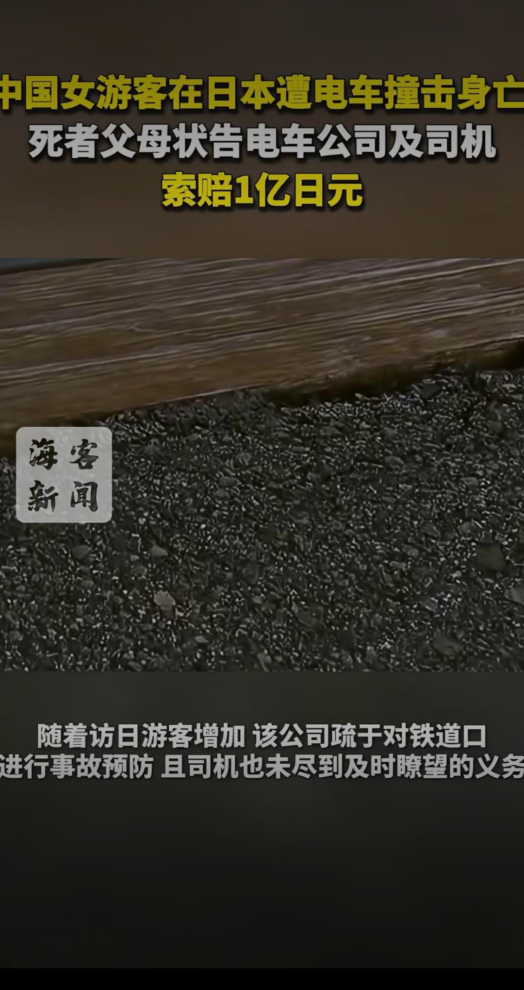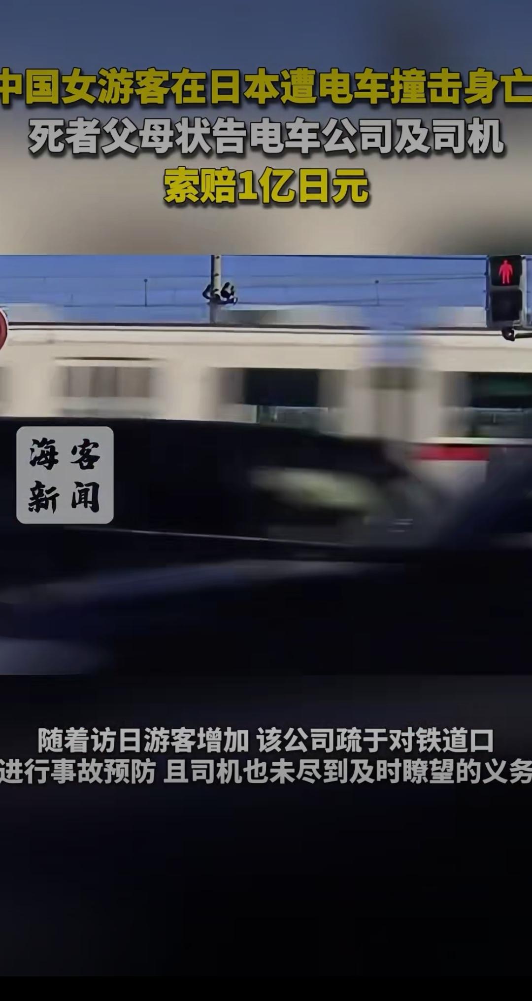 1亿日元索赔背后!中国女游客日本电车遇难,父母泣诉:铁道口的安全漏洞谁来补?无人值守道口 谁也没想到,一场期待已久的日本之旅,会变成天人永隔的悲剧。中国女游客在日本某铁道口遭电车撞击身亡,悲痛欲绝的父母将电车公司和司机告上法庭,索赔1亿日元。这起悲剧的背后,不仅是一个家庭的破碎,更撕开了访日游客激增下,部分公共设施安全管理的短板。 据媒体报道,遇难女子趁着假期赴日旅游,却在途经一处无人看守的铁道口时,与疾驰而来的电车相撞,当场身亡。白发人送黑发人的痛苦,让父母一夜苍老。他们在诉状中直言:随着访日游客数量连年攀升,涉事电车公司却疏于对铁道口的事故预防——既未增设警示标识、防护栏等基础设施,也未升级自动预警系统;而司机在行驶过程中,也未充分履行及时瞭望的义务,最终导致悲剧发生。 要知道,日本作为旅游热门地,每年接待数百万中国游客。游客带着对异国风情的向往而来,却可能面临未知的安全隐患。这处铁道口并非首次出现险情,此前就有当地居民反映过视线受阻、警示不足的问题,但公司始终未重视整改。在游客密集的区域,这样的“安全疏忽”,无疑是将生命置于险境。 1亿日元的索赔,从来不是数字游戏,而是对生命的敬畏,对责任的追责。遇难女子的父母只想讨一个公道:为什么本可避免的事故,会夺走女儿的生命?为什么公司明知存在安全漏洞,却迟迟不整改?这不仅是一个家庭的呐喊,更是所有出境游客的心声——我们奔赴远方,是为了看世界的美好,而不是直面生命的风险。 目前,案件仍在审理中,但这起悲剧已给所有旅游目的地敲响警钟:安全是旅游的底线,任何时候都不能松懈。涉事公司是否存在失职?铁道口的安全隐患何时能彻底消除?欢迎在评论区分享你的看法,也愿逝者安息,正义不缺席!